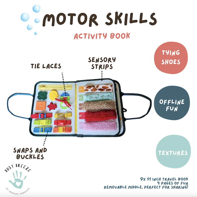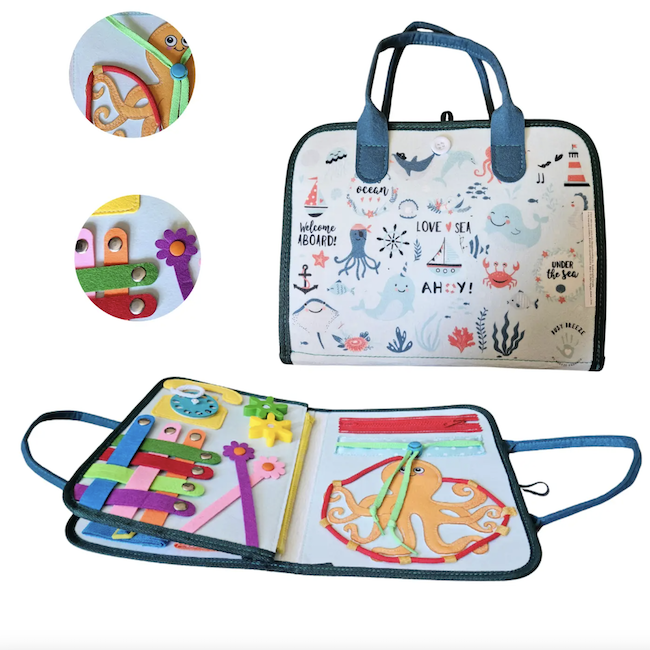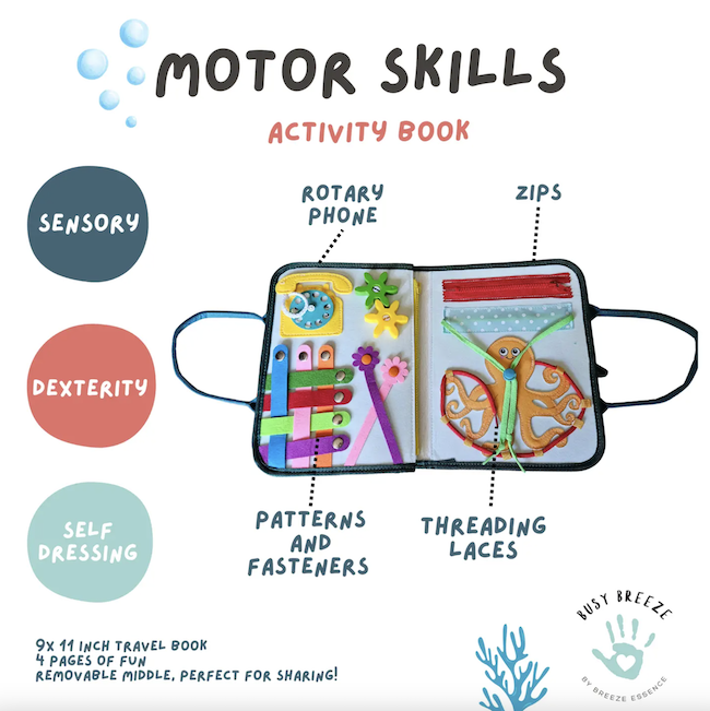 Meet Busy Breeze Boards: The best toy for sensory learning activities to develop imagination, encouraging practical life skills, problem solving, hand-eye coordination improvement, and all levels of fine motor skills. This toddler toy enables toddlers to self-learn dressing skills, counting while playing, learning colors and gaining fine motor skills. If you're searching for a toy that can teach your toddler to learn some basic life skills while simultaneously keeping them busy, using their fine motor skills, the busy board will be a great solution for you.