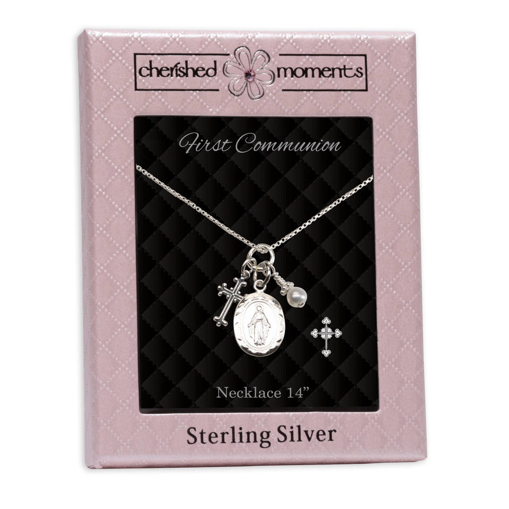 Cherished Moments First Communion Miraculous Medal Necklace for Girls & Kids