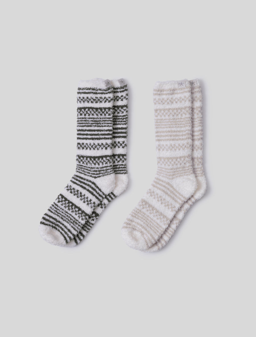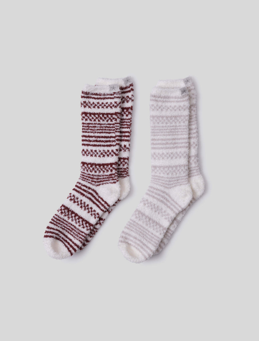 Experience the perfect blend of style and comfort with our CozyChic® Checkered Stripe Sock Set. This two-pair collection features mid-calf length socks adorned with an intricate all-over checkered and striped jacquard pattern. Crafted from premium materials, these socks deliver the signature softness Barefoot Dreams is known for while providing reliable support and durability. Imported.