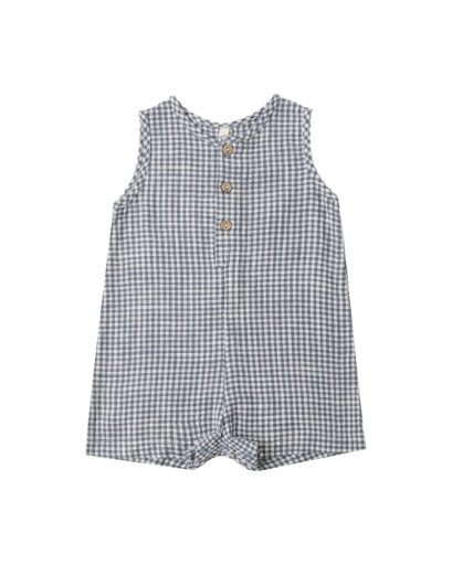This slim cut sleeveless romper is an everyday essential for the warmer days ahead. Includes front buttons and bottom snaps for easy changes.
