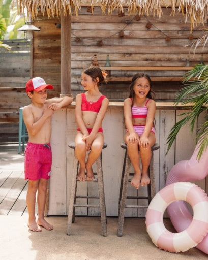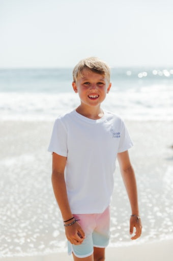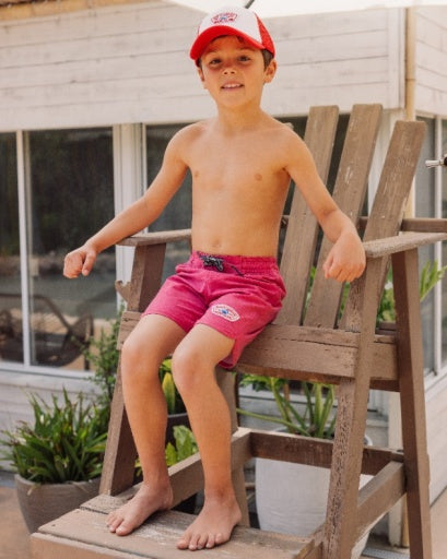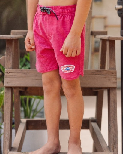 🧵 Design Detail – Our solid scallop hem boardshort designed with an adjustable waistband for the perfect fit, functional velcro back pocket, and a fun embroidered "Wild Waves" patch