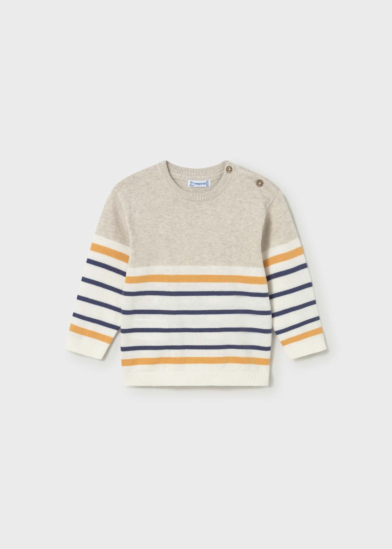 Cozy and classic, the Mayoral Baby Striped Sweater in Oat Heather is a warm, soft knit that brings timeless