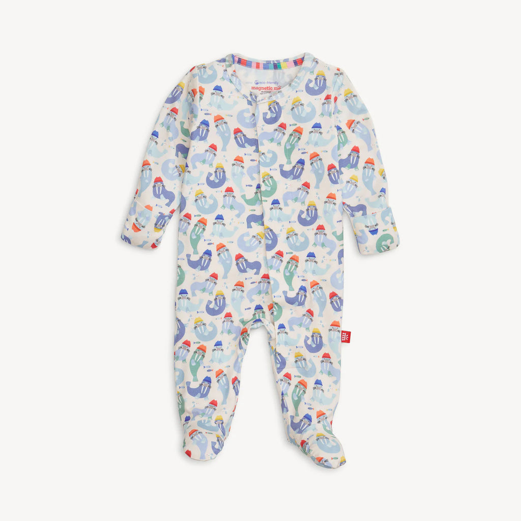 - Magnetic closures make for quick, easy dressing and diaper changes.