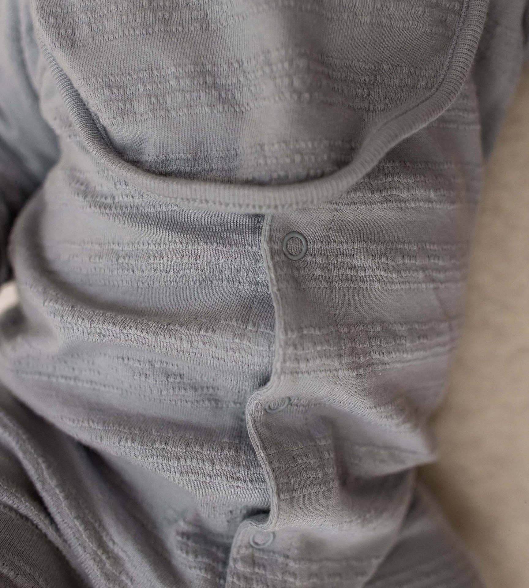 This 3-piece set includes a footed jumpsuit, rounded drool bib, and knot top hat, making it the perfect daily outfit!