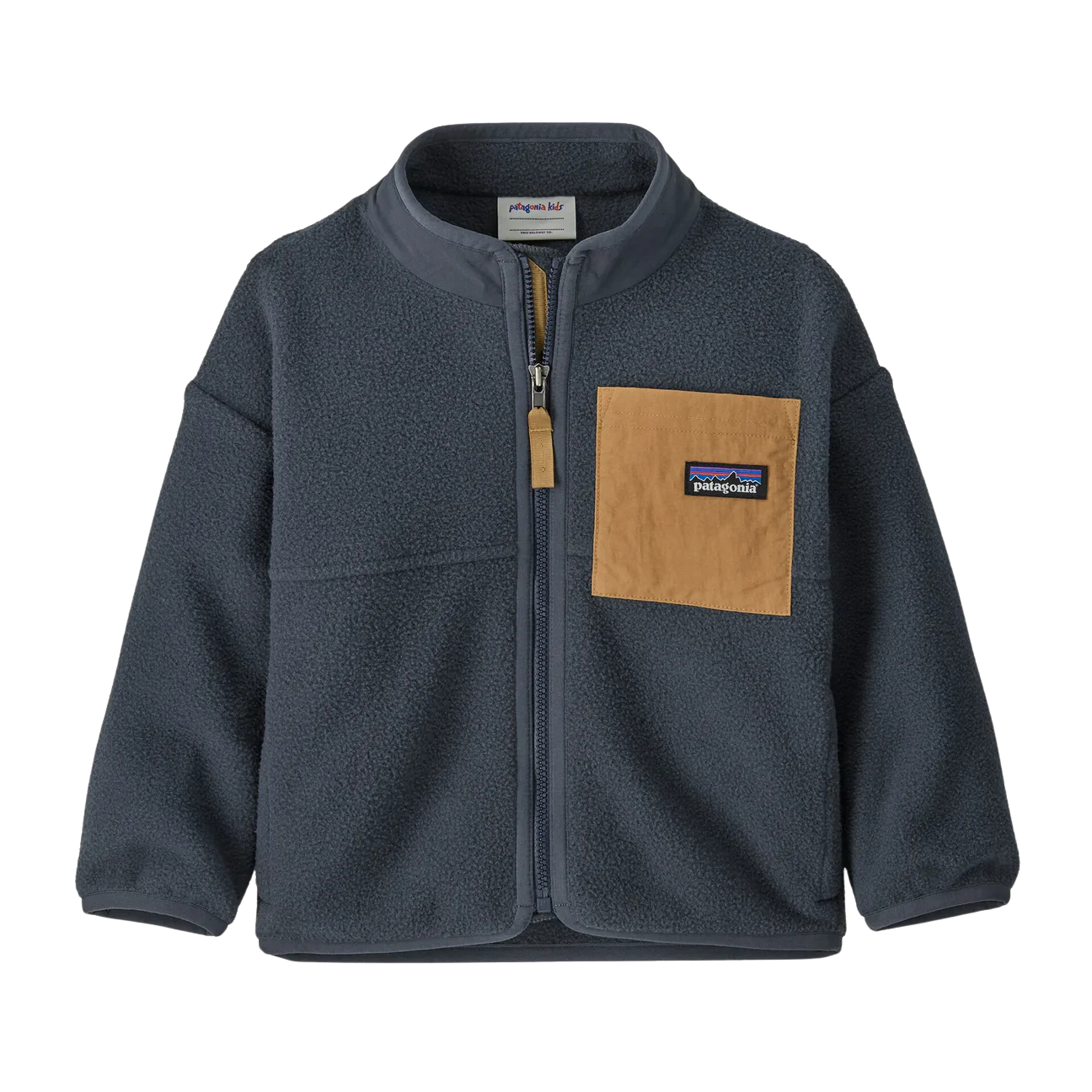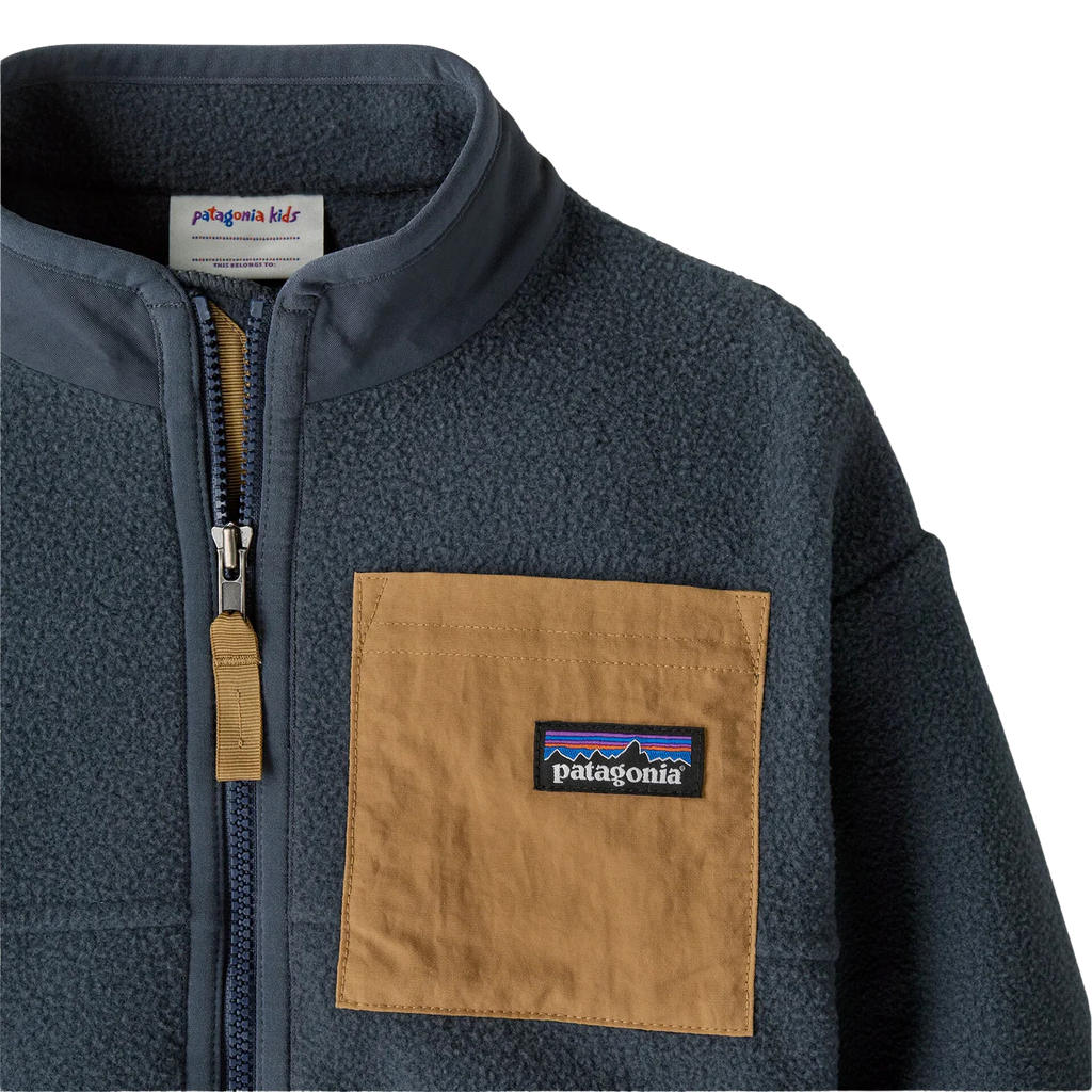 A Patagonia classic for babies, this full-zip jacket is crafted of warm, double-sided 100% recycled polyester fleece with 100% recycled nylon trim fabric on the outer collar and the left-chest patch pocket. Made in a Fair Trade Certified™ factory.