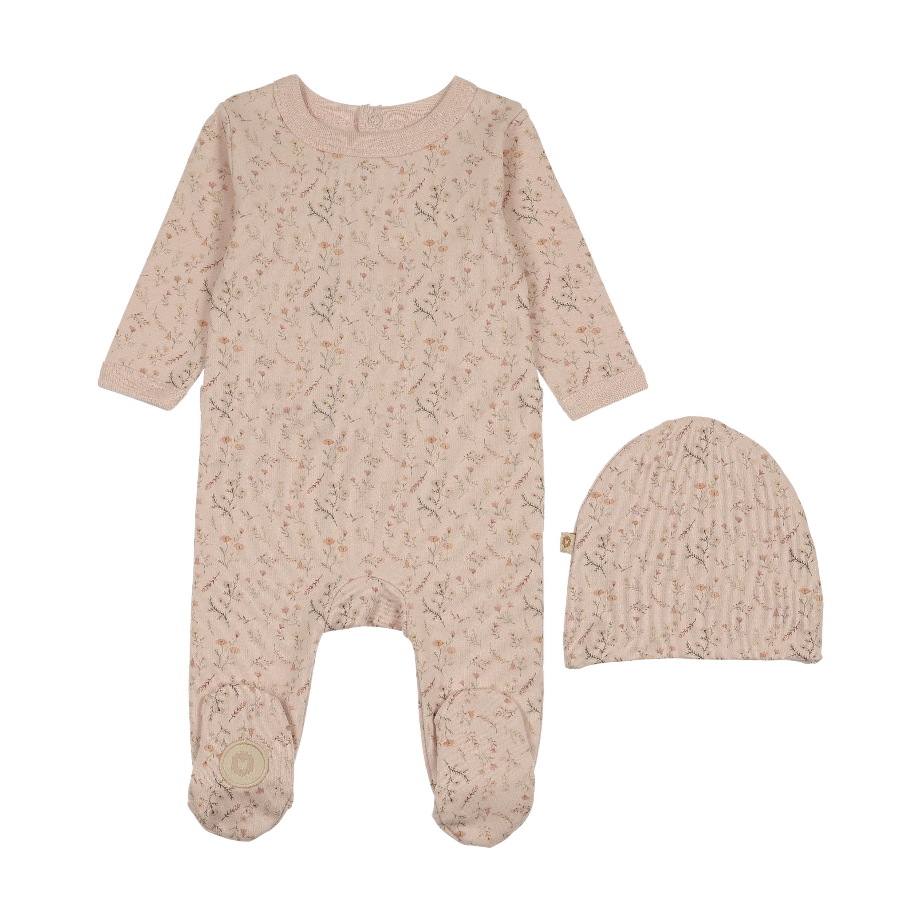 Mon Tresor Bebe Botanical Girls Footie & Hat Set - Barely Pink / 1m / Cotton is backordered and will ship as soon as it is back in stock.