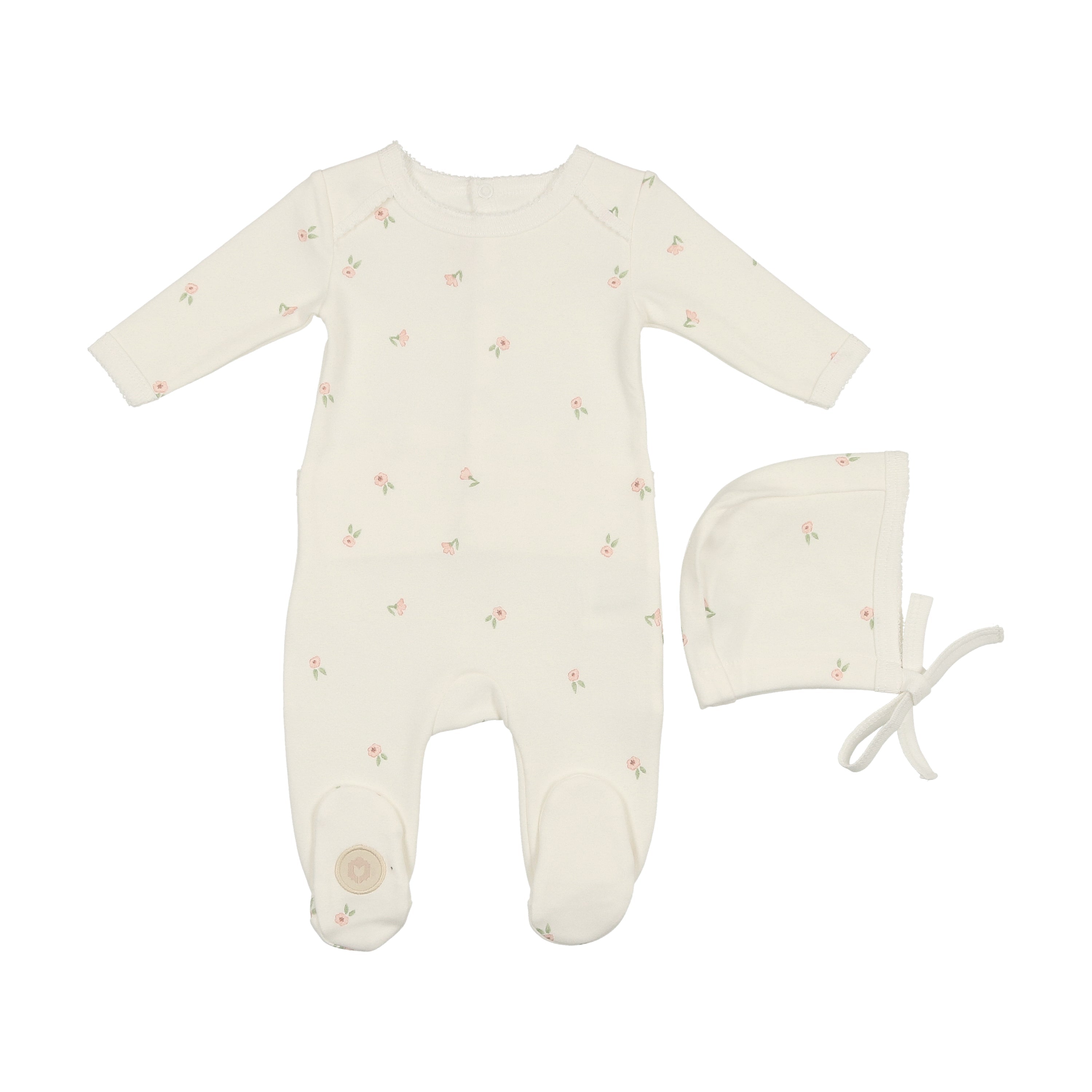 Mon Tresor Bebe Cascade of Blossoms Footie & Hat Set - Barely Pink / 1m is backordered and will ship as soon as it is back in stock.
