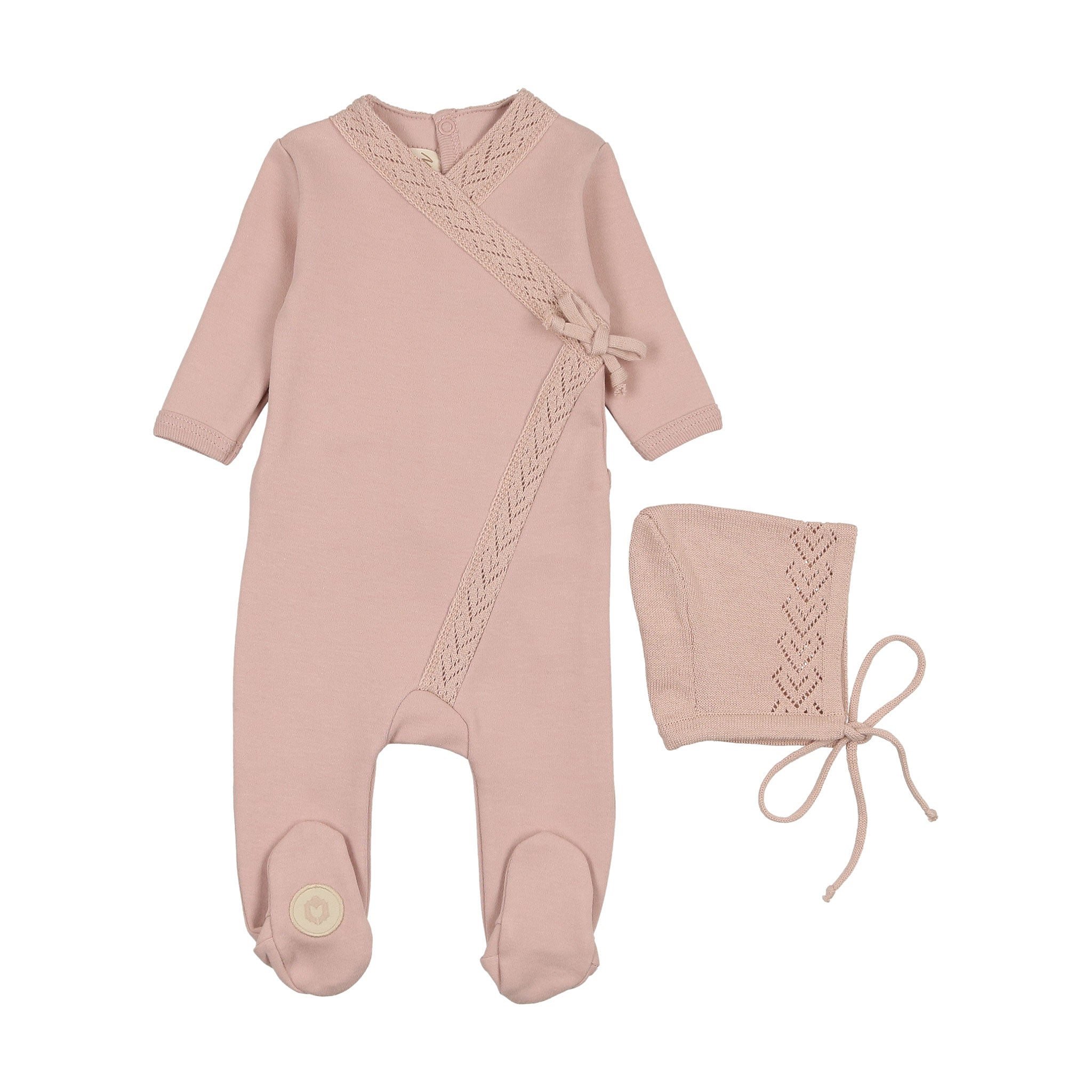Mon Tresor Bebe Knit Twist Footie & Hat Set