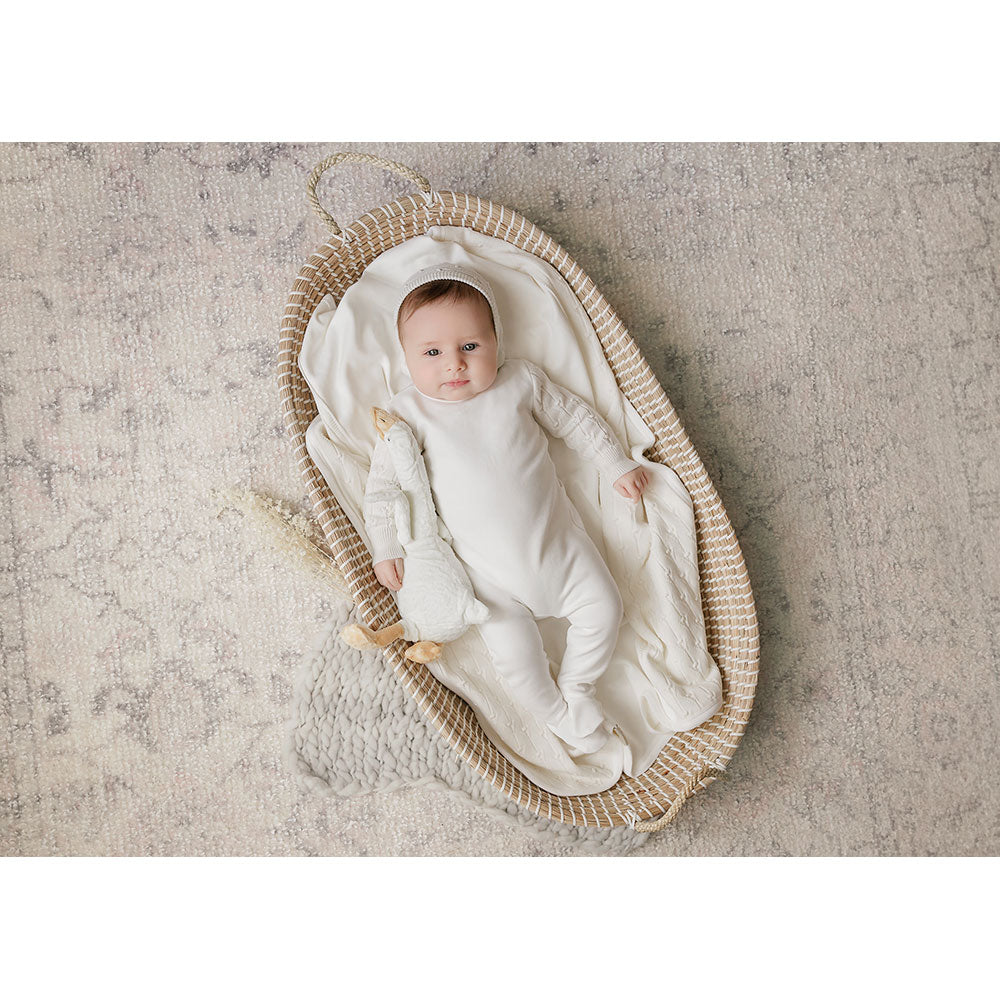 Mon Tresor Bebe Luxe Texture Footie & Hat Set