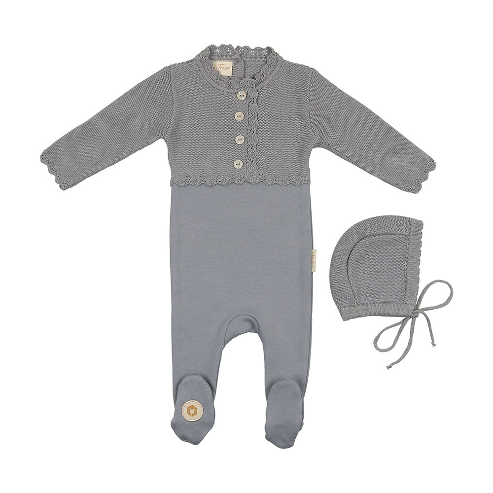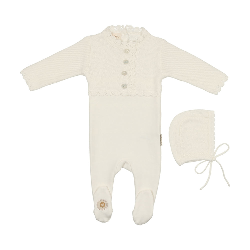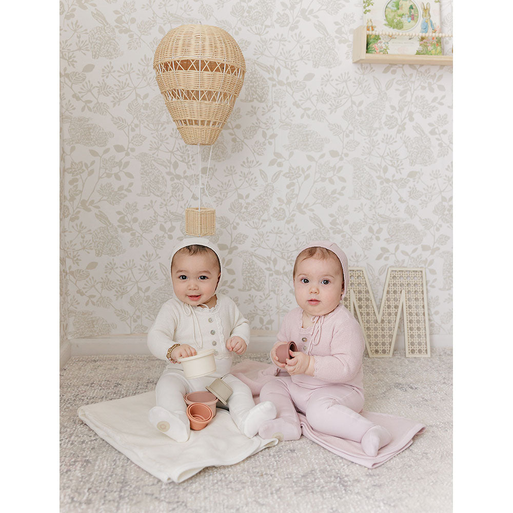 Mon Tresor Bebe Mock-Cardigan Footie & Hat Set - Light Rose / 1m is backordered and will ship as soon as it is back in stock.