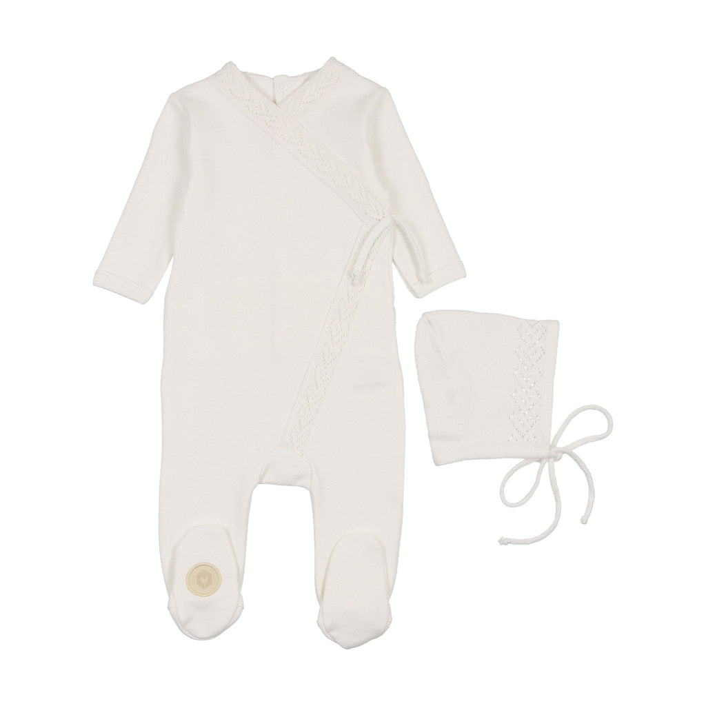 Mon Tresor Bebe Knit Trim Wrap Footie