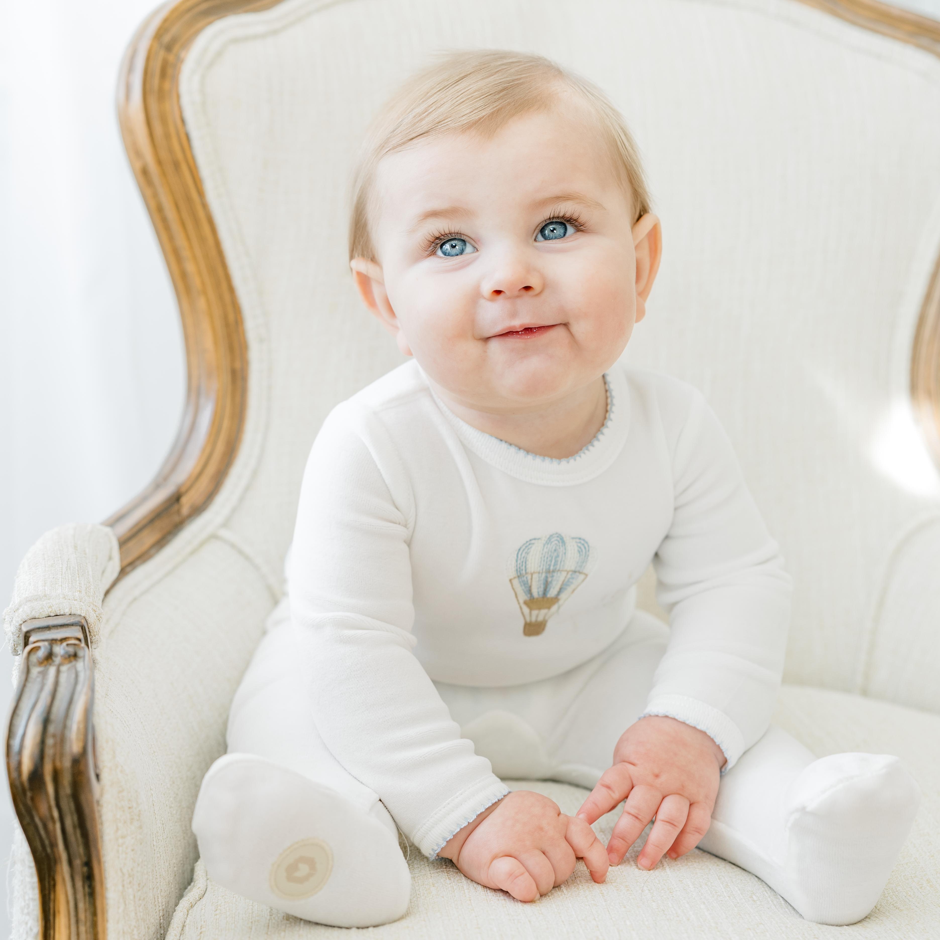 Mon Tresor Bebe Embroidered Balloon Footie - IVO / 6m / Velour is backordered and will ship as soon as it is back in stock.