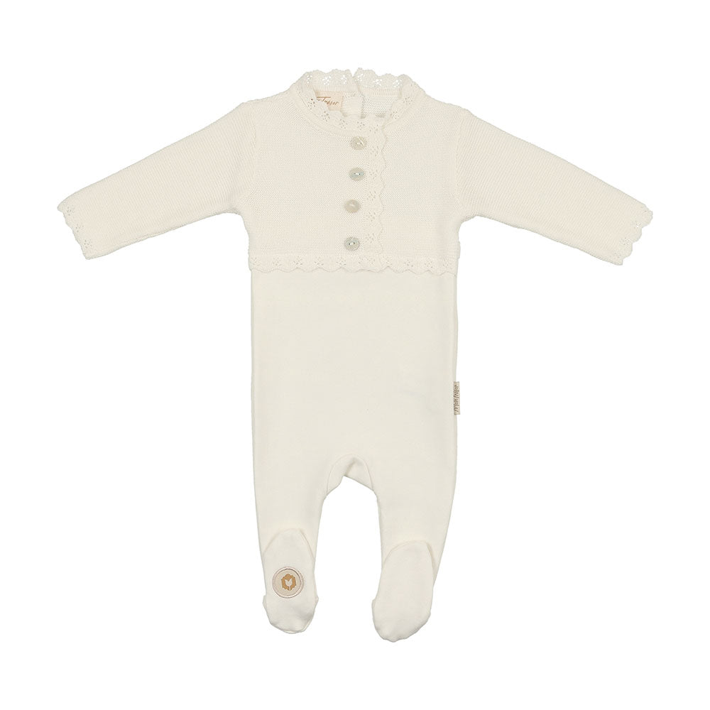 Mon Tresor Bebe Mock Cardigan Footie - Ivory / Newborn is backordered and will ship as soon as it is back in stock.