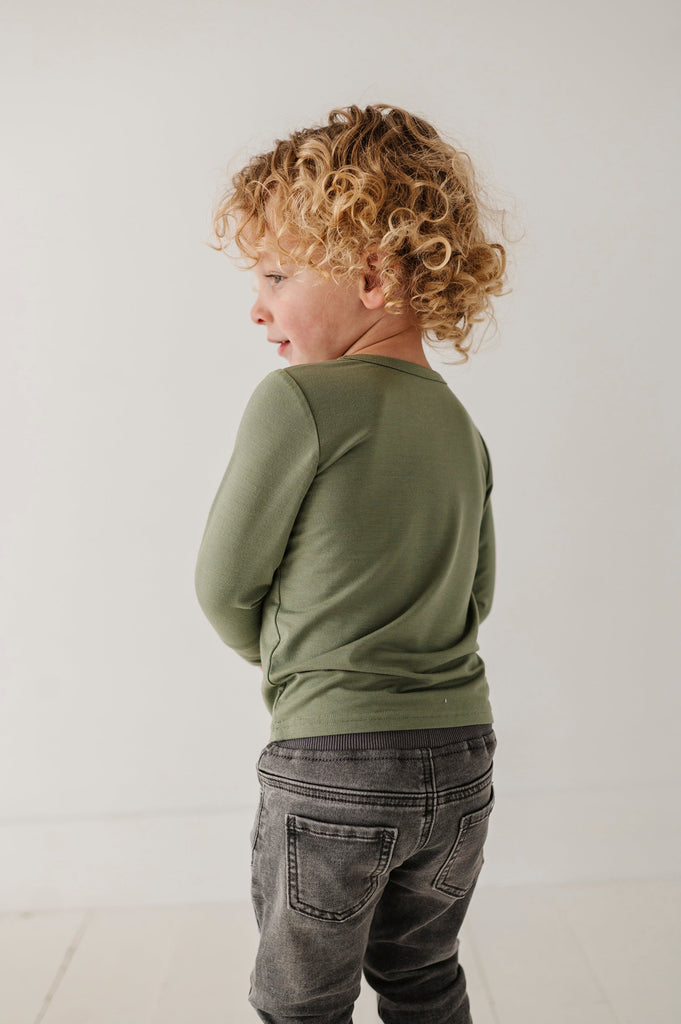 The Boy's Long Sleeve Tee combines timeless style with all-day comfort. Made from bamboo viscose fabric, this tee is soft to the touch and breathable, keeping your child cool and comfortable even during active play. The lightweight material is ideal for layering under jackets or hoodies during cooler weather, yet sturdy enough to be worn alone.