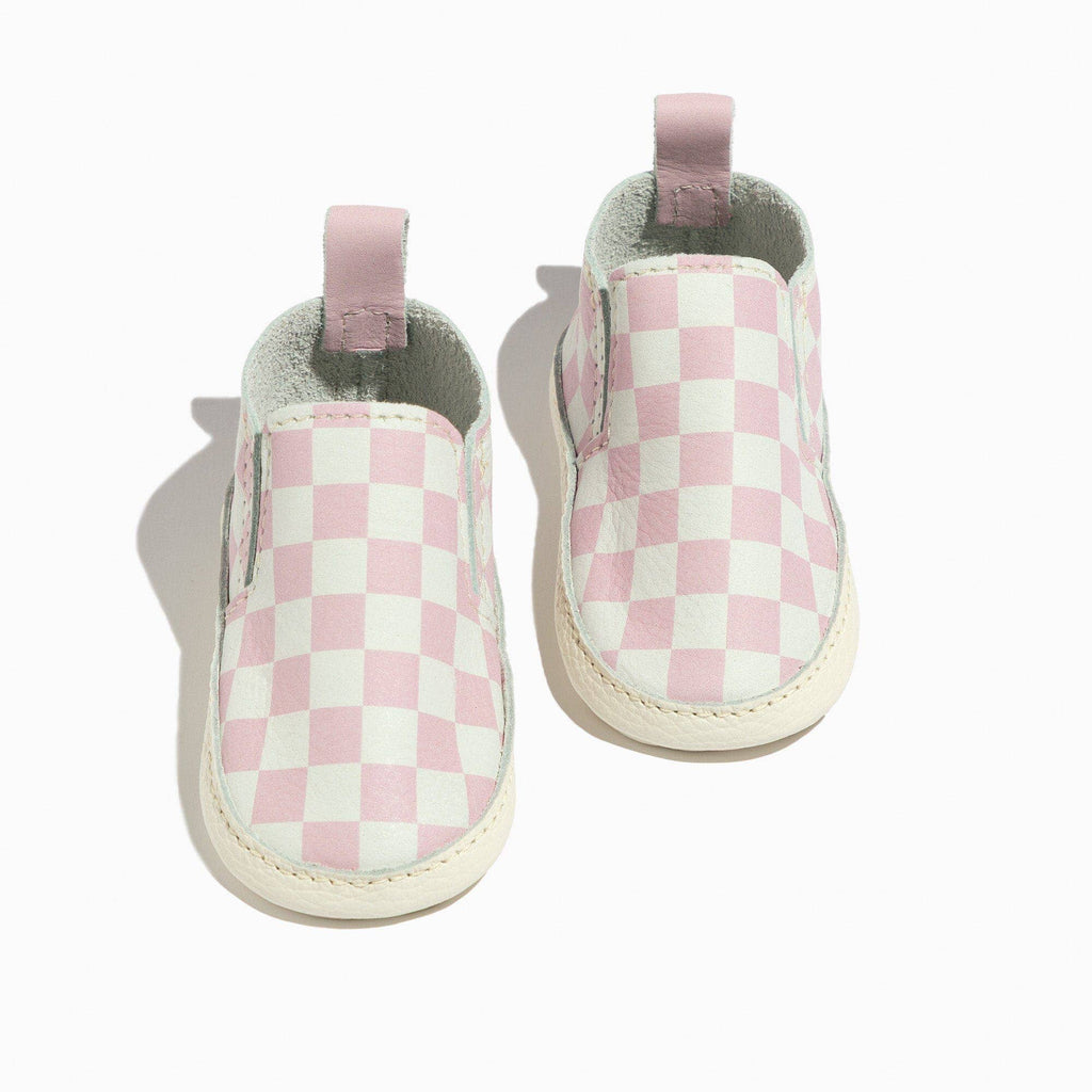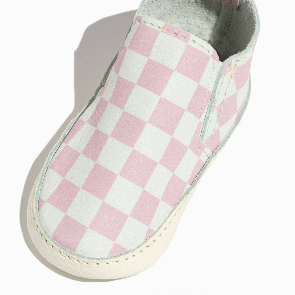 Freshly Picked Petal Pink Check Slip On Baby Shoe