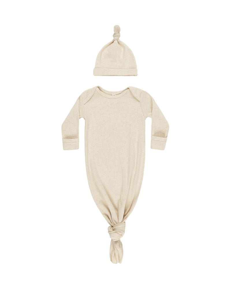 Mushie Ribbed Knotted Baby Gown + Beanie Set