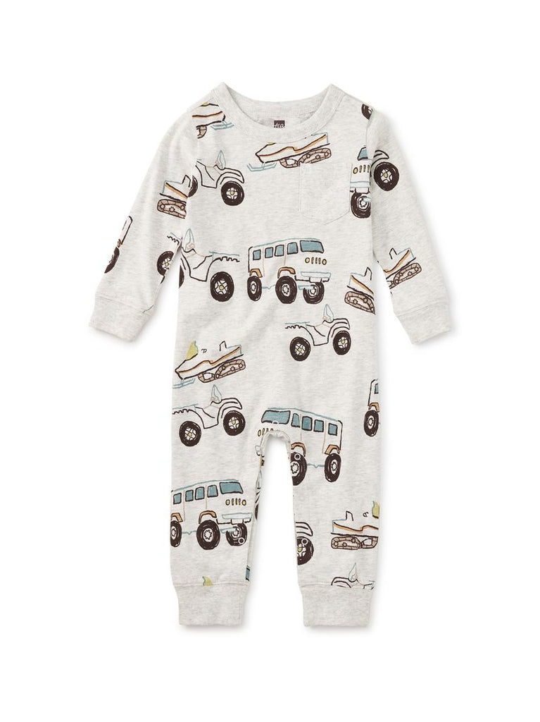 With thoughtful design details like a crew neckline, easy-on shoulder snaps, and convenient inseam snaps, this romper makes dressing and diaper changes simple--especially important for new parents and gift givers alike. The long sleeves offer added warmth for cooler days, and a sweet chest patch pocket adds just the right touch of charm.