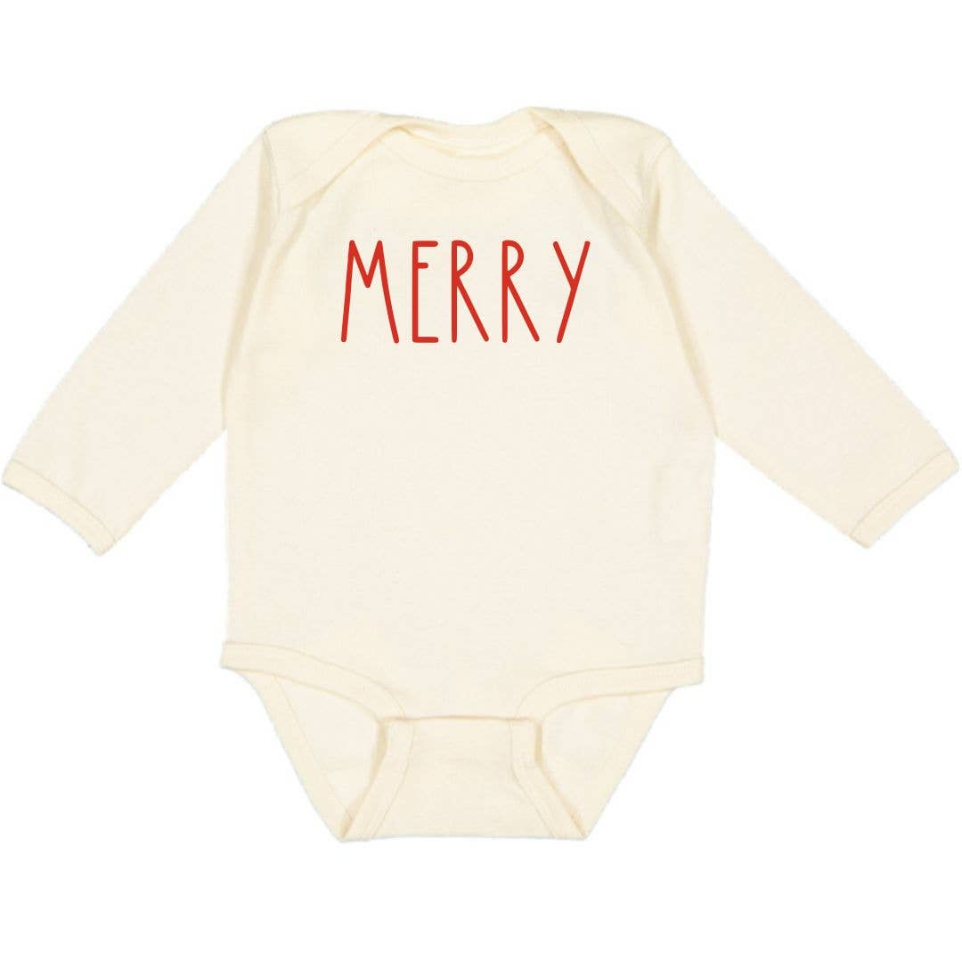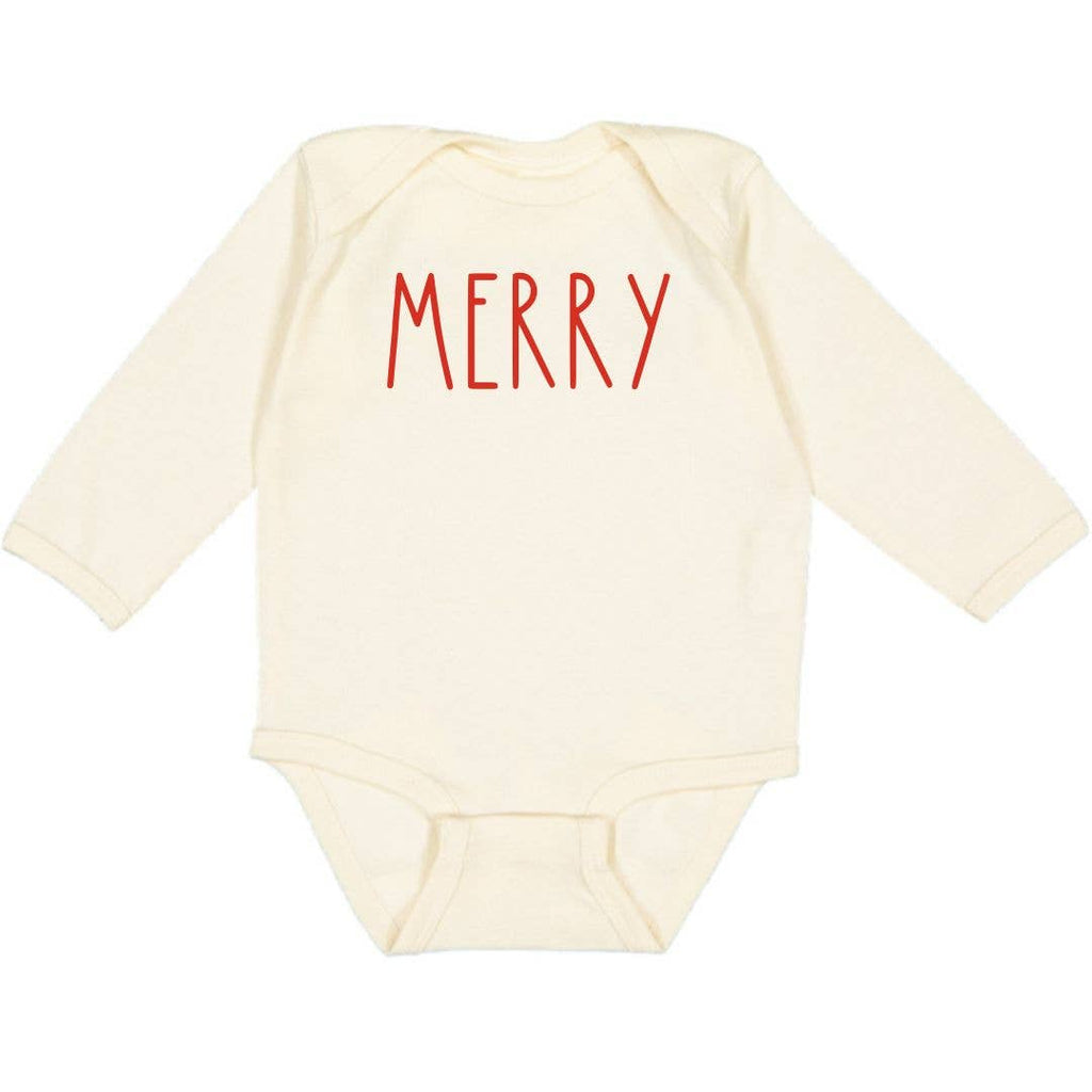 The Merry Doodle Christmas Long Sleeve Bodysuit is a fun and festive bodysuit for babies celebrating Christmas!