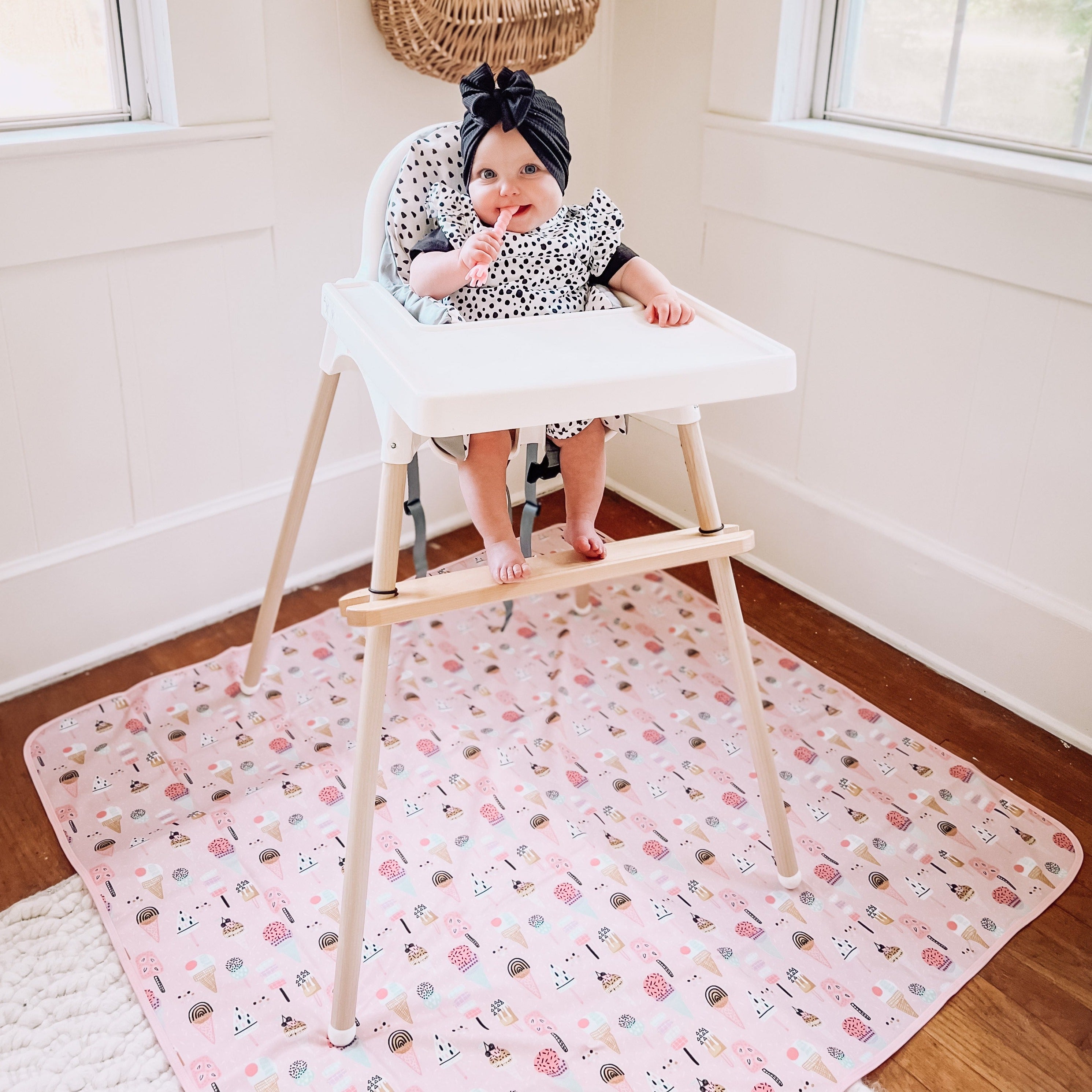 - Under the high chair