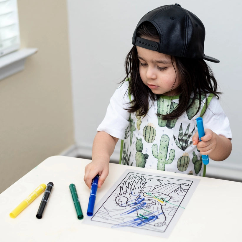 This best-selling “Bapron”, also known as a bib-apron hybrid, full-coverage bib, smock, or apron, is designed for comfort and safety. Because of their comfortable, secure-fitting horizontal ties and their full-coverage design, Baprons are the perfect companion for mealtime, art, and sensory play!