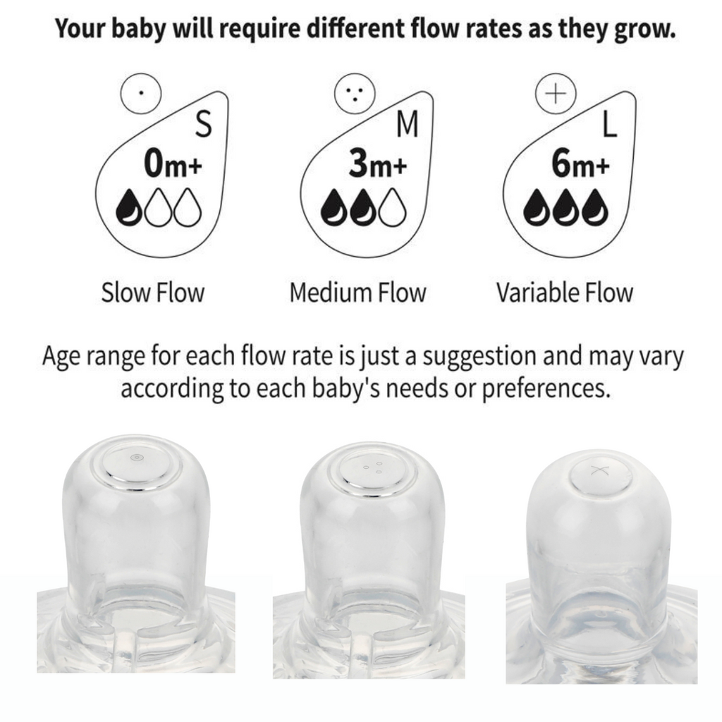 Note: This product is an attachment for our Generation 3 Silicone Bottles, and will not work by itself. Each set contains two nipples.