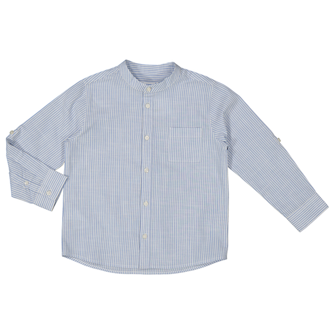 Mayoral USA Long Sleeve Striped Mandarin Collar Shirt - Blue / 5 is backordered and will ship as soon as it is back in stock.