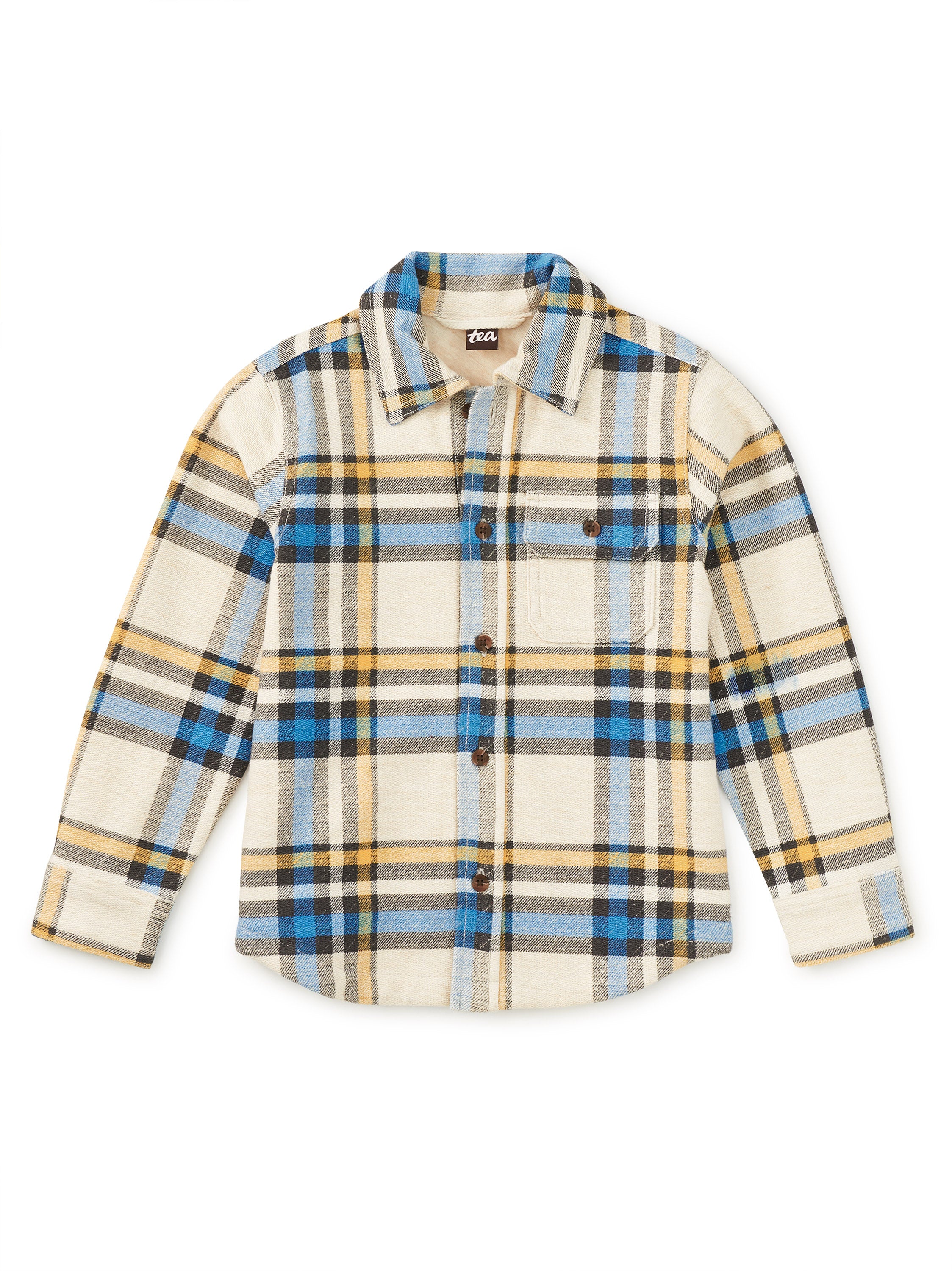 The perfect blend of shirt-meets-jacket, this cozy plaid shacket is made from soft 100% cotton French terry for warmth without bulk. Designed with an easy fit, extra-long sleeves, a button-front placket, and handy on-seam pockets--plus a chest pocket for extra utility. A back neck locker loop makes for easy hanging. Wear it buttoned up on its own or layered over a graphic tee. Style it with our fan-favorite Playwear Pants, Cozy Lined Pants, or joggers for an effortlessly cool-weather look.
