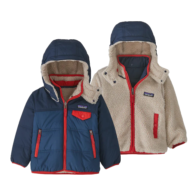 Reversible jacket with 100% recycled polyester fleece on one side and a 100% recycled polyester shell on the other side; insulated with 100-gram Thermogreen® 100% recycled polyester. Made in a Fair Trade Certified™ factory.