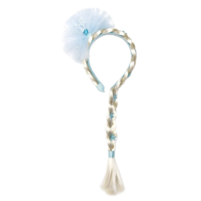 Our Ice Queen Princess Hair Braid features a delicate arrangement of glistening snowflakes that cascade down the blond hair braid like a magical frozen waterfall. The luminous icy hues of blonde & blue, evoke a sense of enchantment, adding an ethereal touch to any look.