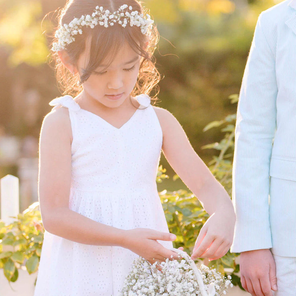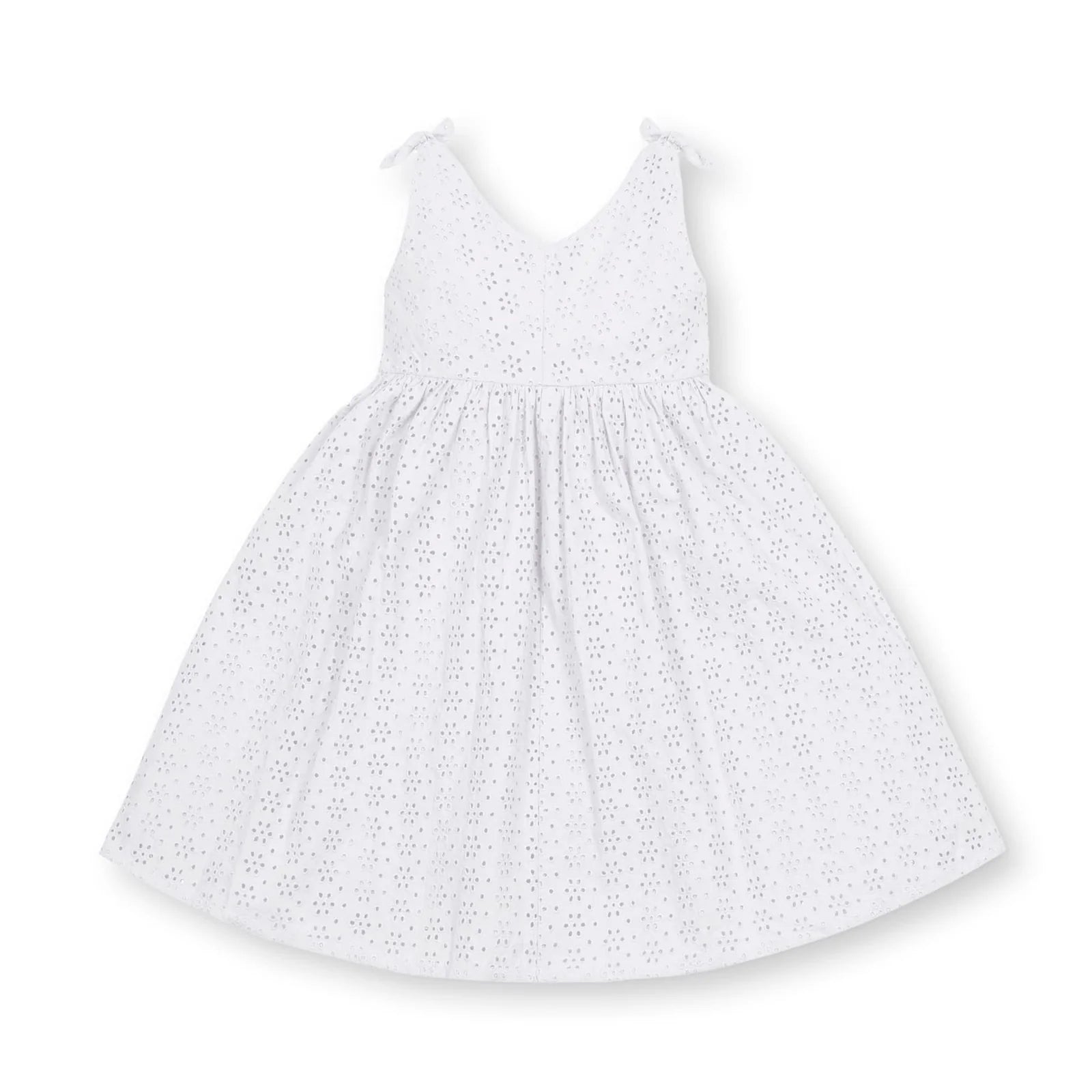 Discover the perfect blend of sweetness and sophistication in our bestselling eyelet bow shoulder dress. Crafted from 100% GOTS-Certified organic cotton, this charming piece features delicate eyelet detailing that feels fresh and airy for warm-weather adventures.