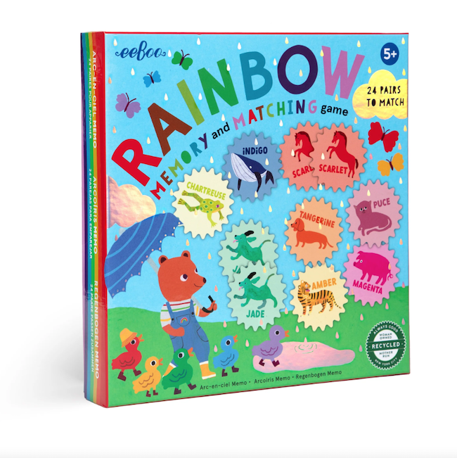 A classic matching game that builds vocabulary, concentration, and observation skills. Learn to recognize, discern, and practice the wonderful language of color. Learn basic colors but also tones and subtleties within the spectrum. Tiles feature sophisticated color vocabulary, sharpening precision in identifying different hues. Puce, chartreuse, and crimson and more. Once you know these colors you will see them everywhere; use them to enrich your story telling as well as to appreciate the depth and detail within books and conversation.