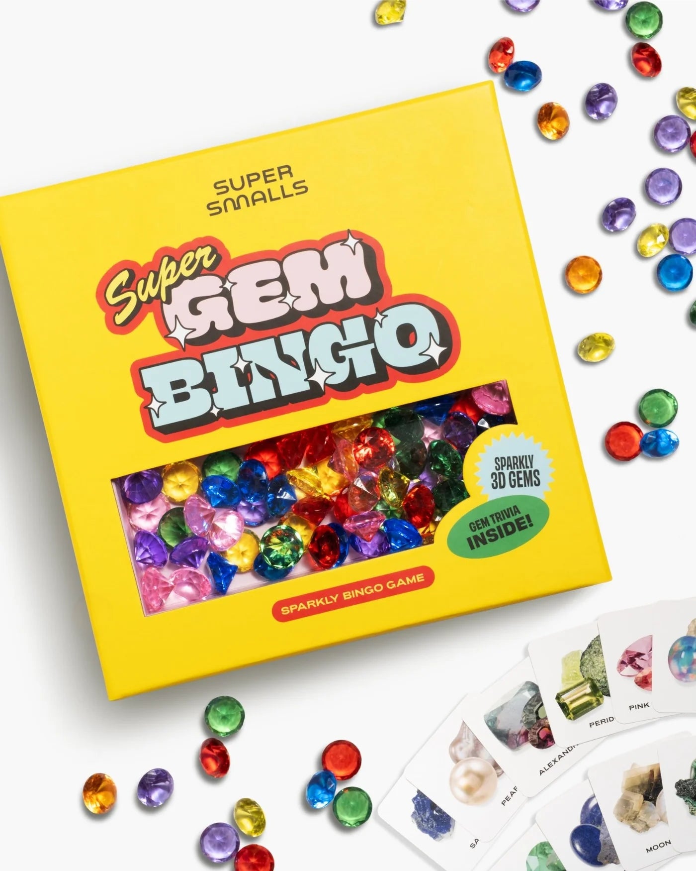 Get ready to shout BINGO!—Super Smalls style. The Super Gems Bingo Game puts a sparkling twist on a classic favorite, with oversized gem-shaped bingo chips and cards full of fun gemstone facts to read aloud as you play. From rubies to quartz, kids and grown-ups alike will learn while they laugh, play, and compete for the win. It’s family game night, leveled up with a little extra sparkle.