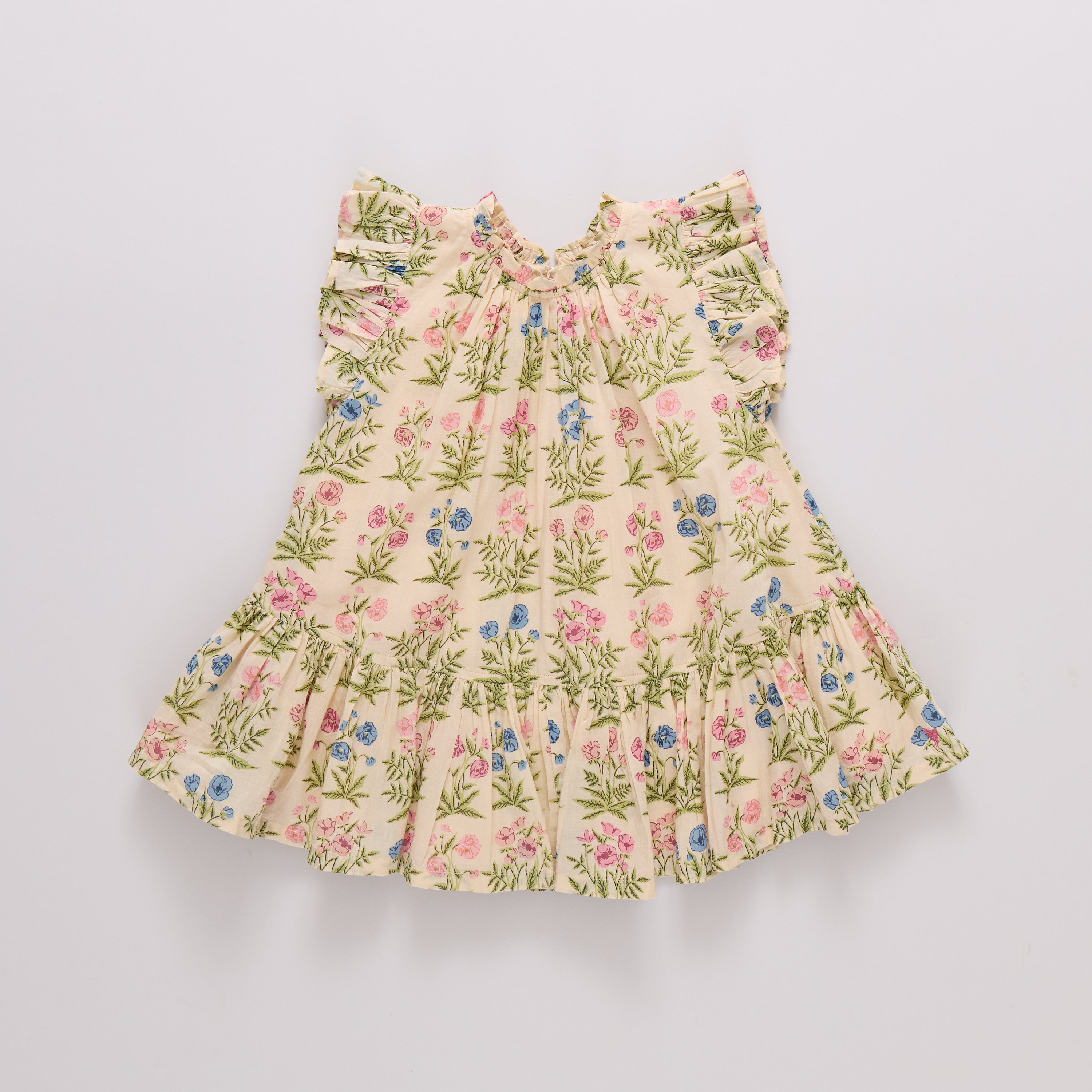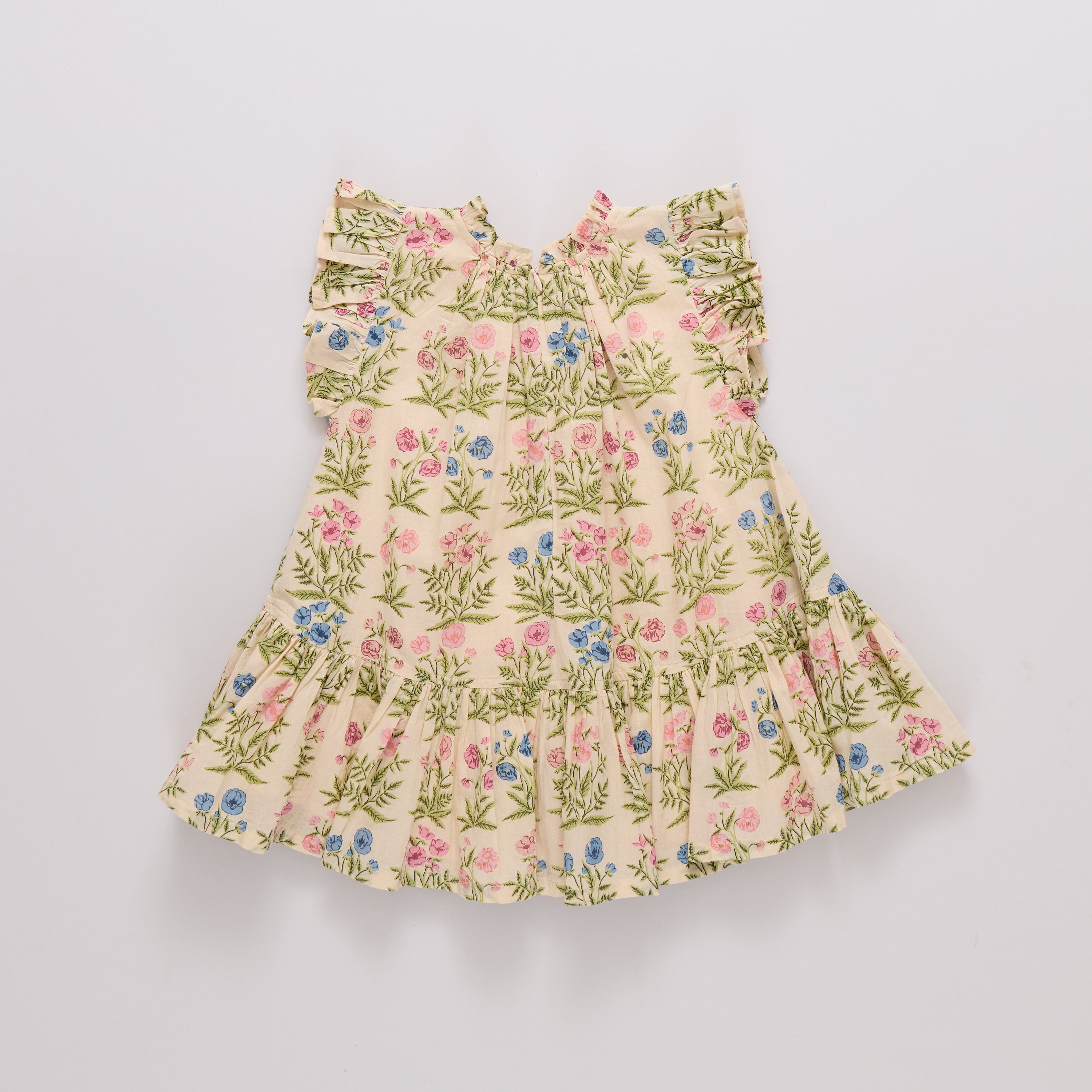 Our Girls Harper Dress in Leafy Floral captures the feeling of a sunlit garden in bloom. Soft gathers and fluttery ruffles create a silhouette that feels as light and lovely as spring itself. Matches perfectly with the Baby Girls Wynne Bubble and the Women’s Marilyn Bell Sleeve Dress.