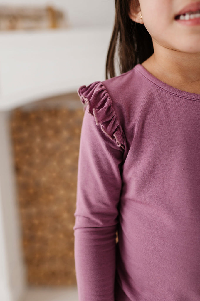The Girl’s Long Sleeve Ruffle Top is designed to bring a blend of comfort and style to your little one’s wardrobe. Made from bamboo viscose fabric, it’s gentle on skin and breathable enough for all-day wear. The ruffle details add a whimsical, feminine flair that’s perfect for dressing up or keeping it casual.