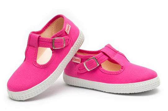 Made in Spain This fun T-Strap is perfect for dress-up and play. Each shoe features light padding, adjustable hook-and-loop strap, a non-slip outsole, and a light, fruity scent. This shoe is machine washable. Just remove the insole and let air dry. All Cienta shoes are "Made in Green" certified and made in a factory in the small town of Arnedo, Spain.