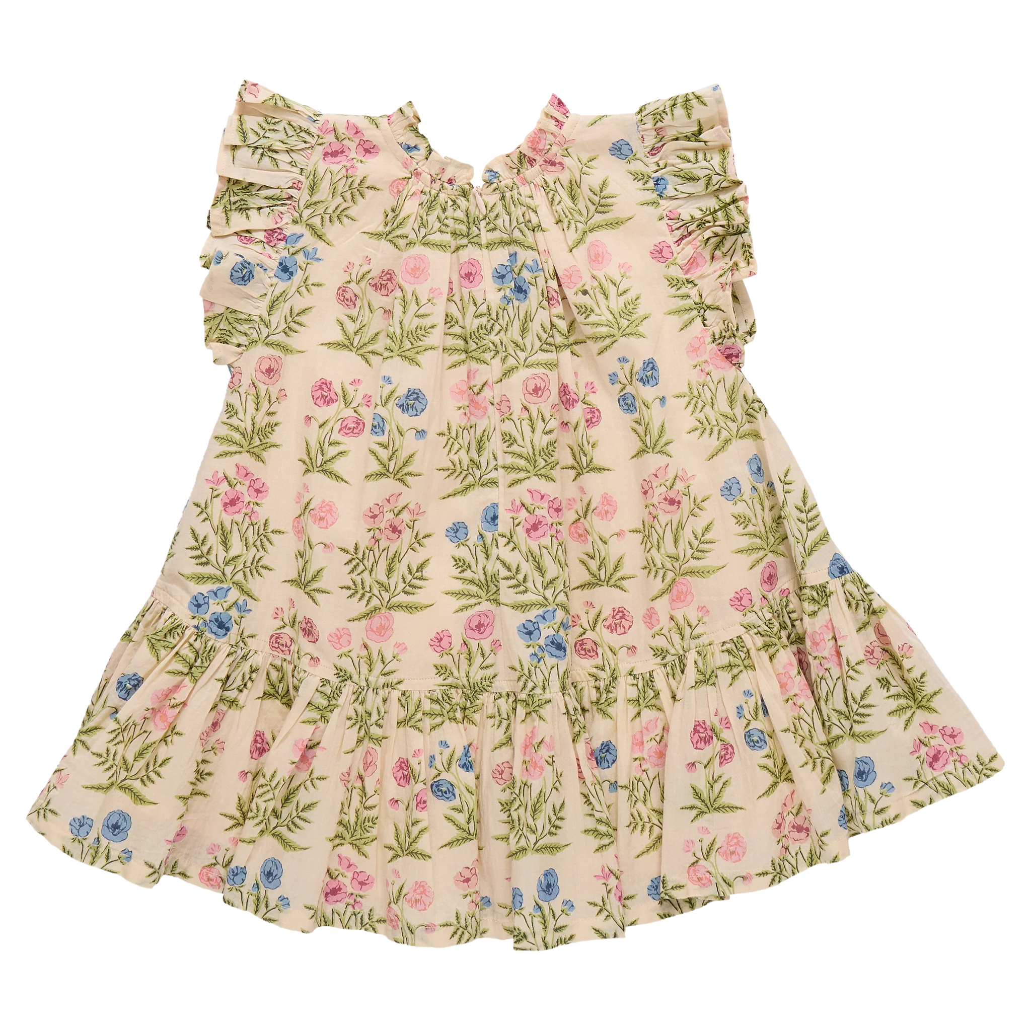 Our Girls Harper Dress in Leafy Floral captures the feeling of a sunlit garden in bloom. Soft gathers and fluttery ruffles create a silhouette that feels as light and lovely as spring itself. Matches perfectly with the Baby Girls Wynne Bubble and the Women’s Marilyn Bell Sleeve Dress.