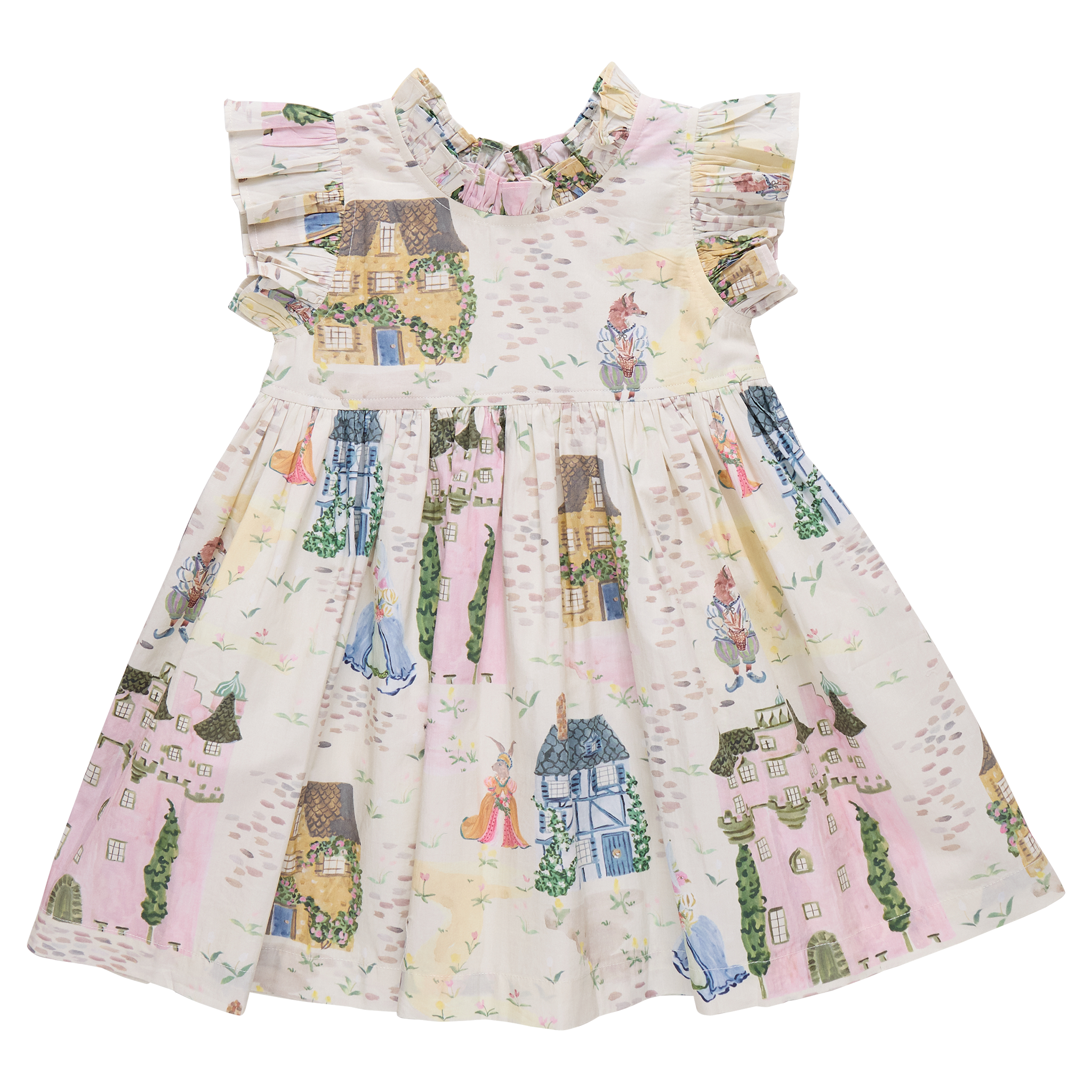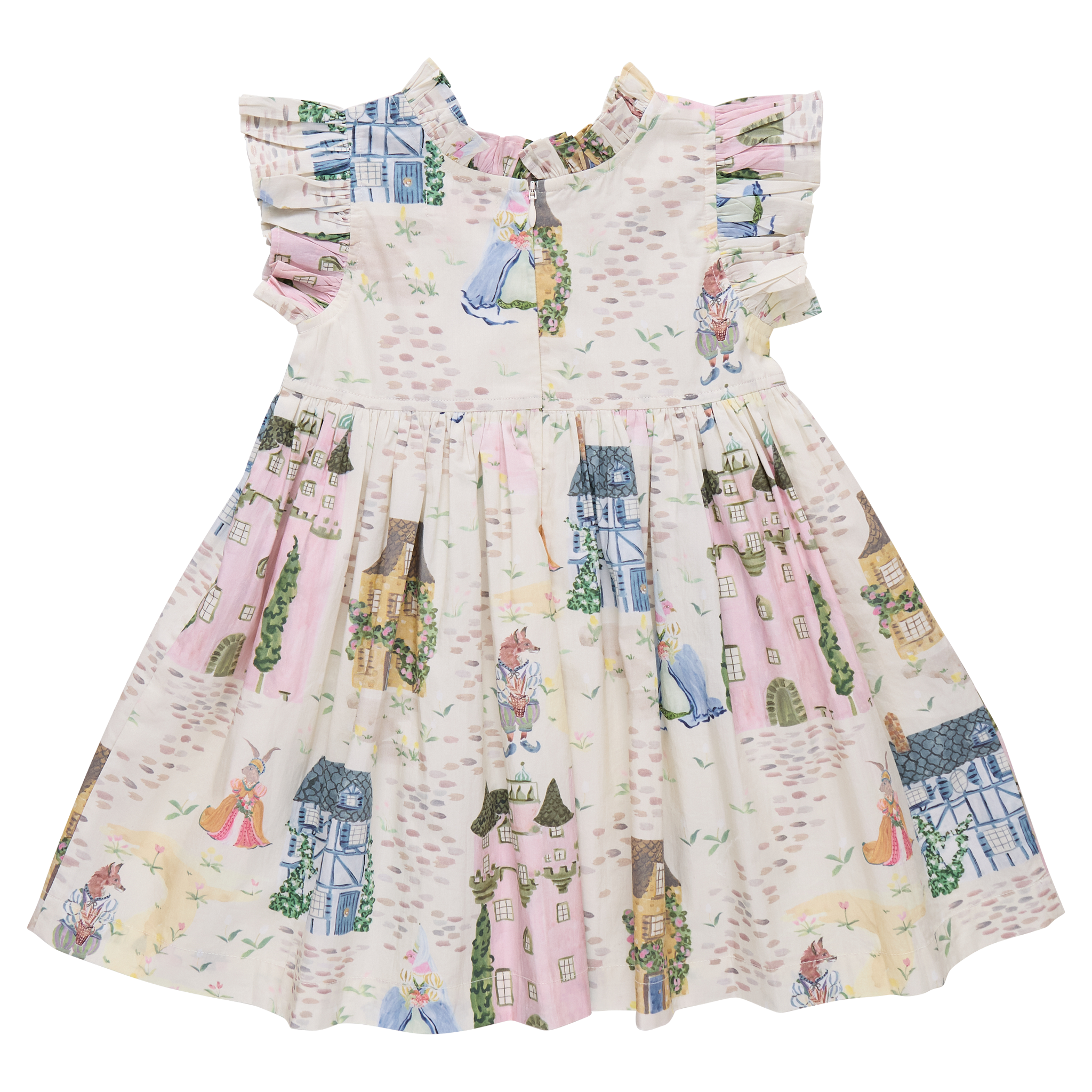 Ruffle sleeves and neck, invisible zipper , pink velvet trim