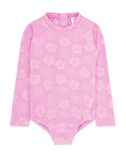 Design Detail –Providing sun protection and style, this long-sleeve swimsuit is drenched in an all-over vibrant pink tropical floral print. It's surf-style design features a back zipper pull closure for easy on and off; combining fun, coverage, and style for sunny adventures.