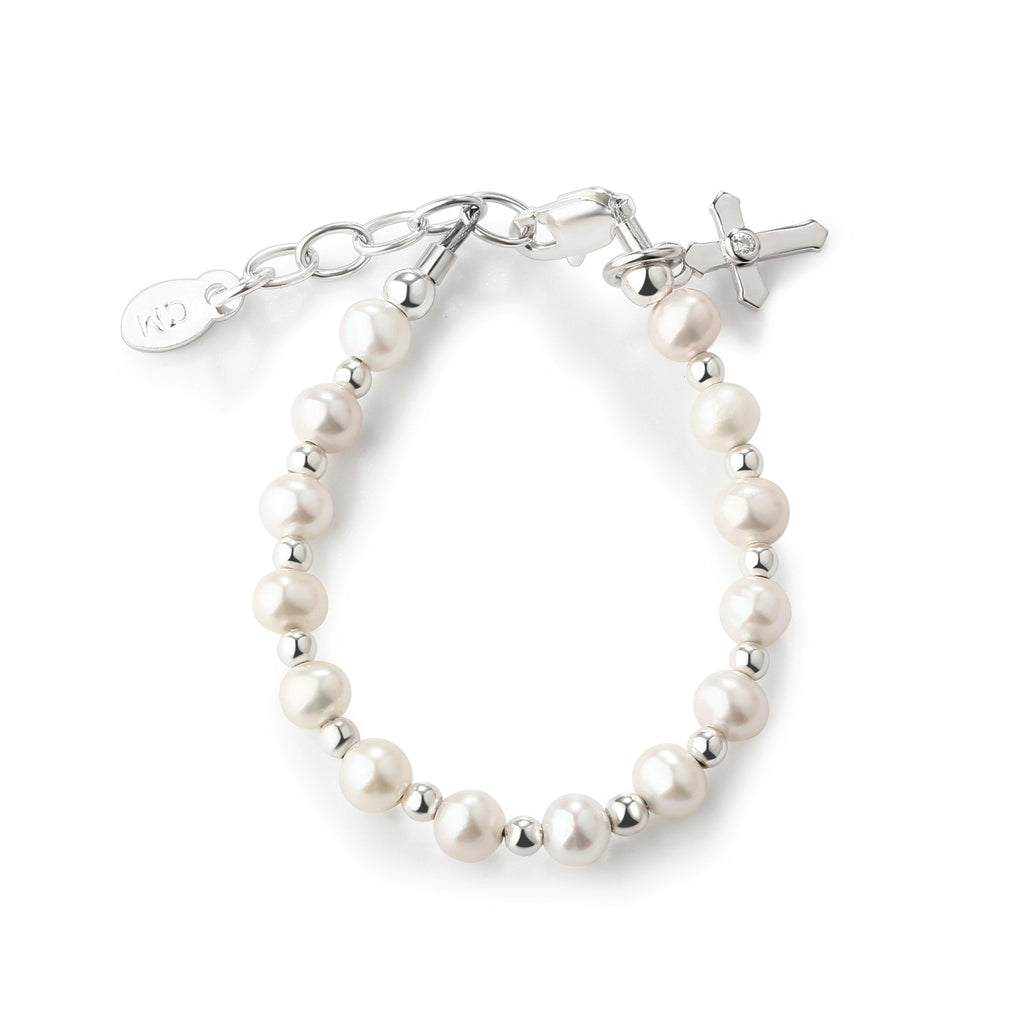 Cherished Moments Silver Pearl Cross Bracelet For Baptism or Christening
