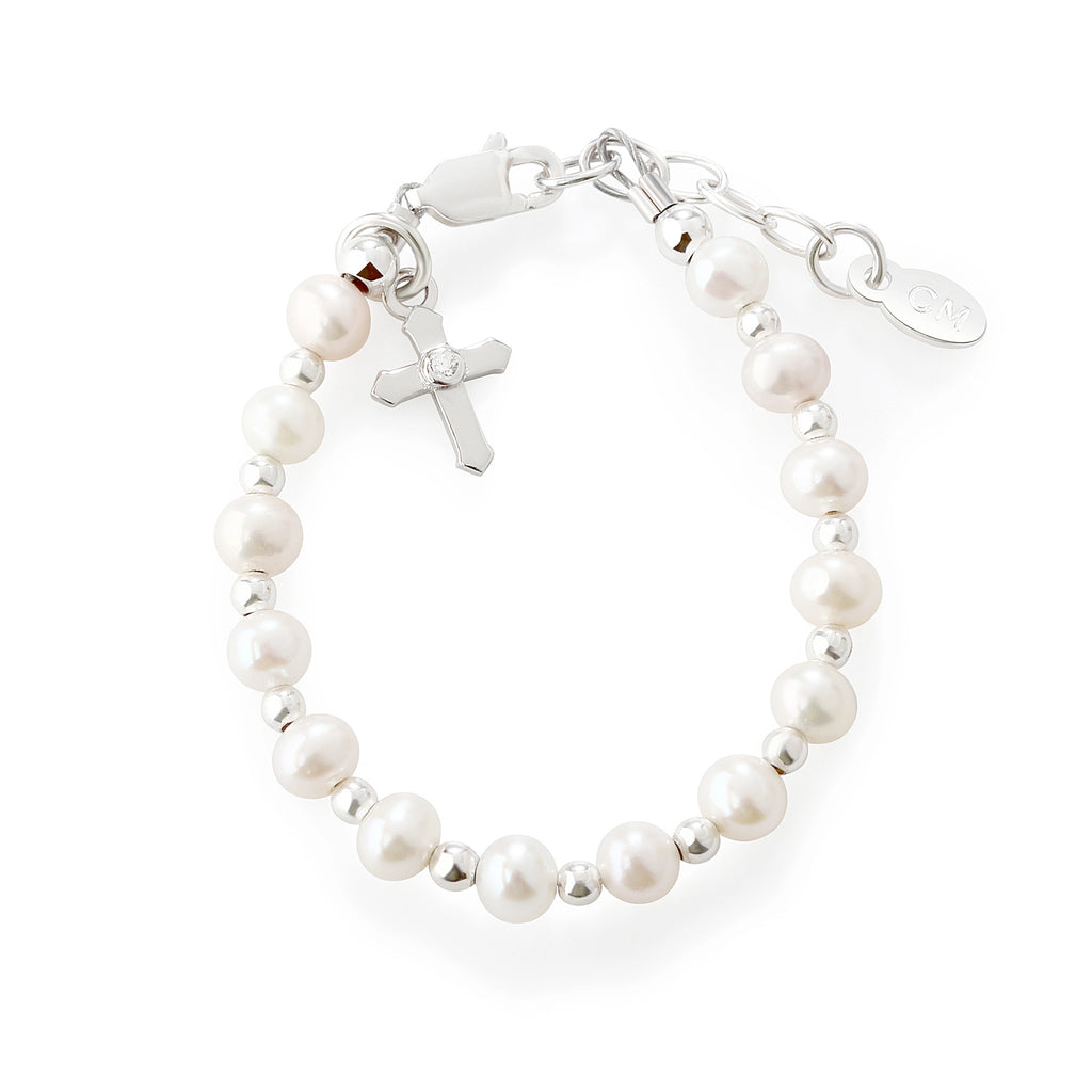 Cherished Moments Sterling Silver Pearl Cross Bracelet