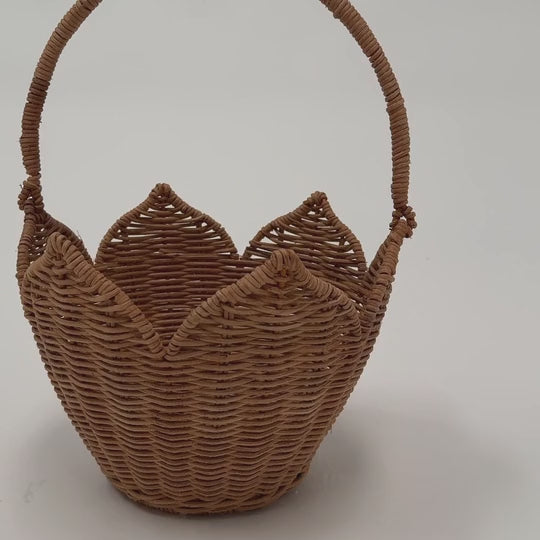 Fill your nursery, play space, or holiday gatherings with everlasting cheer using our Rattan Poinsettia Carry Basket - Natural! This beautifully woven basket features a whimsical scalloped edge and a convenient carry handle, making it perfect for toting essentials in and out of the home. Fill it with toys, festive treats, or holiday decorations—whatever your heart desires!
