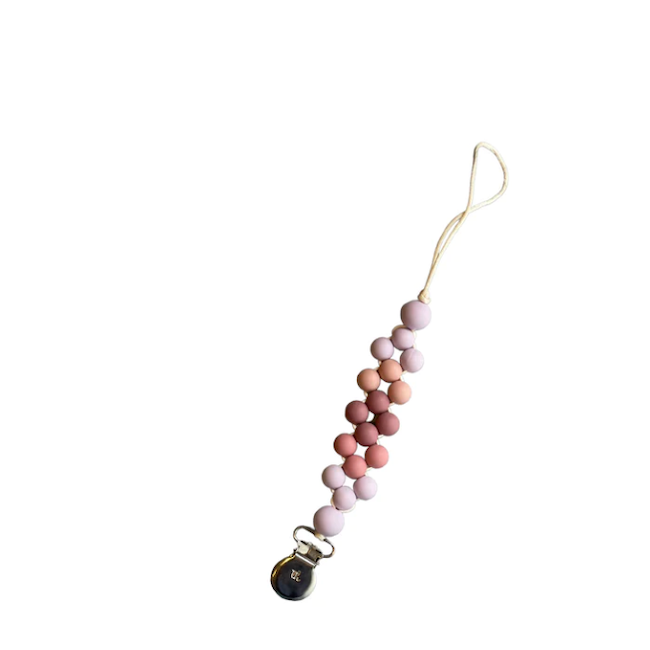 This clip is part of our Grande collection at 11.5 inches in length. For baby, mom, and especially grandma! The front of the clip is a circle with the Three Hearts logo engraved into it. Its an elegant paci/toy clip. Our clips are made with BPA free silicone for the most optimal teething needs.