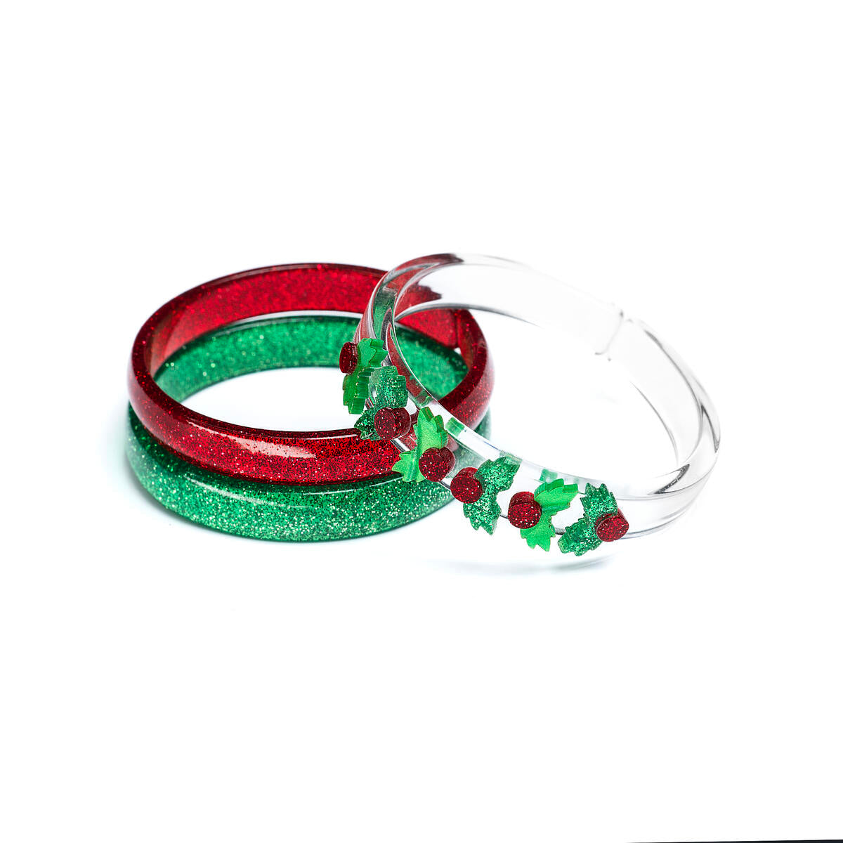 Christmas Tree Multi Glitter Pink + Green Bangle Set