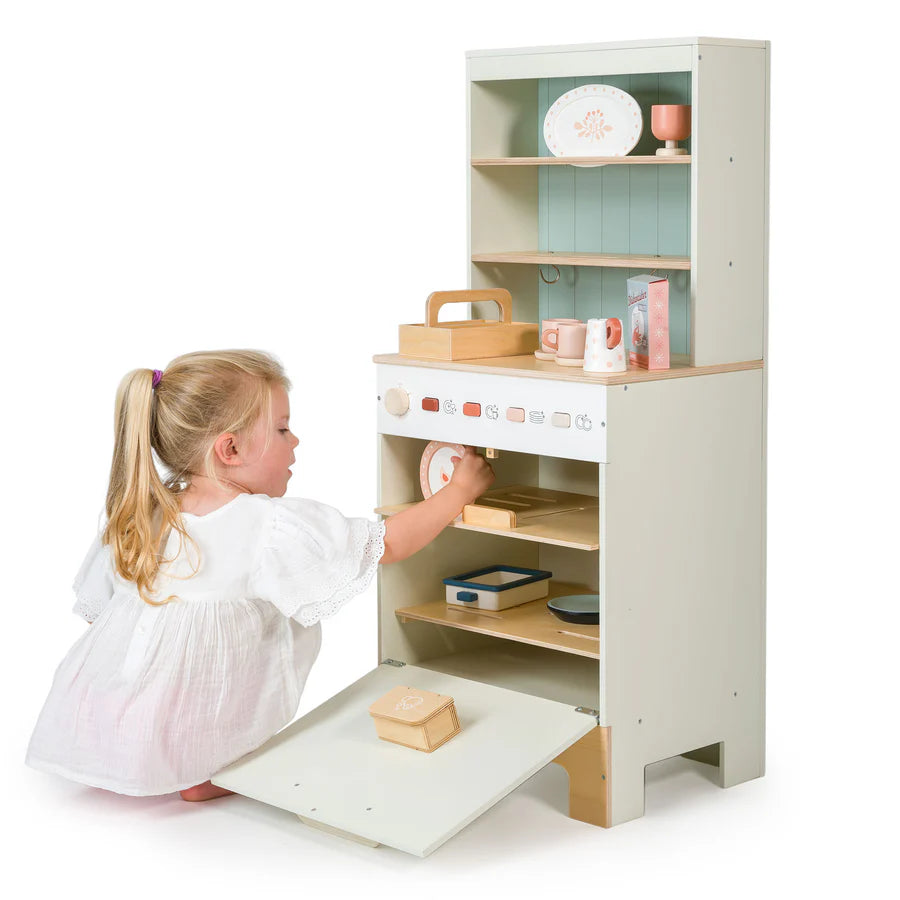 A wonderful addition to our kitchen range, this dresser style unit tops a dishwasher with 2 sliding drawers to position plates and cups, and a tray for the cutlery. On the inside of the front opening door is a holder with lid for a dishwasher tablet. Included in this set are 2 cups and saucers, 3 pretty illustrated plates, a serving platter, 2 goblets, a dotty milk jug, 2 sets of cutlery and a cutlery tray. We have also added a dishwasher tablet box printable to this set for extra play.