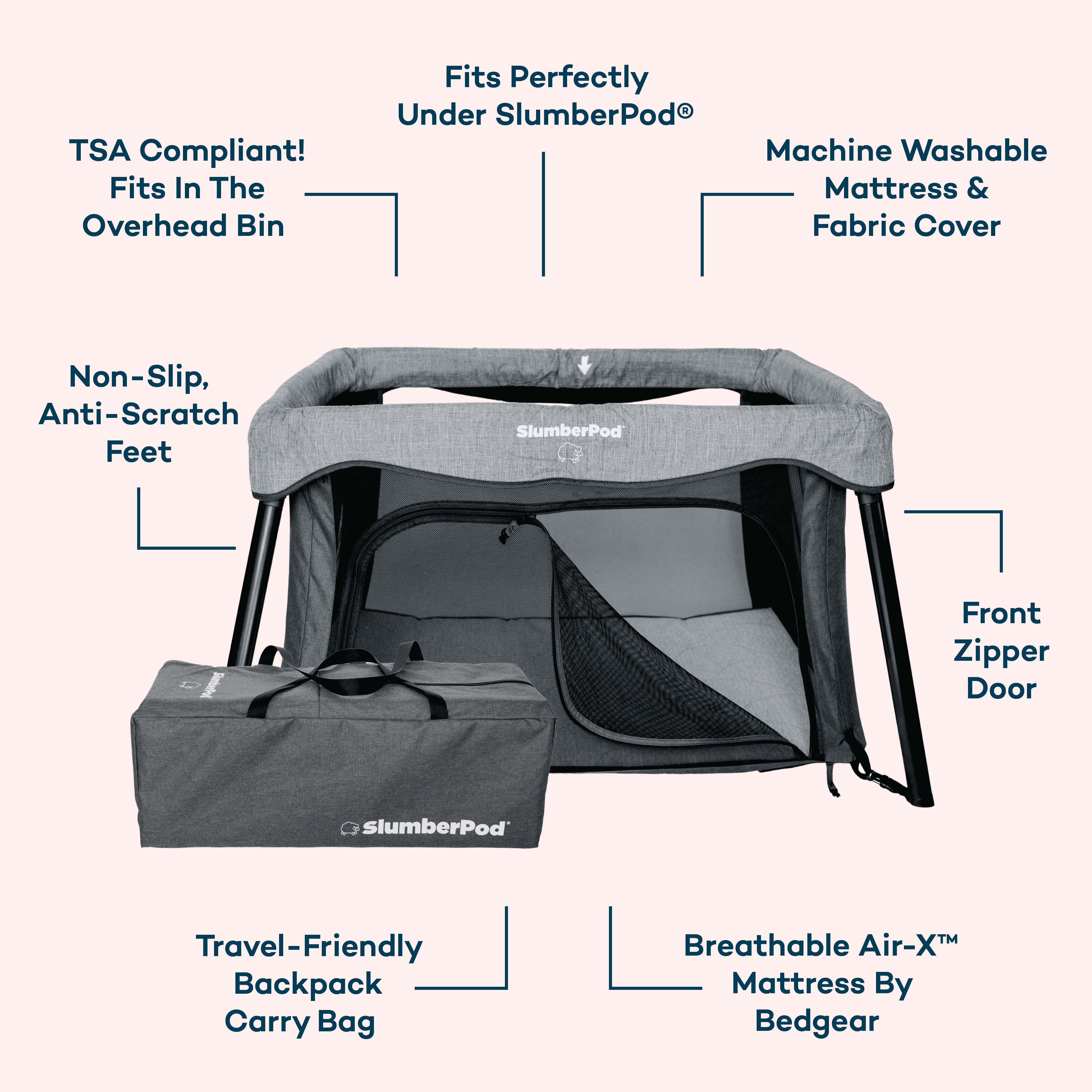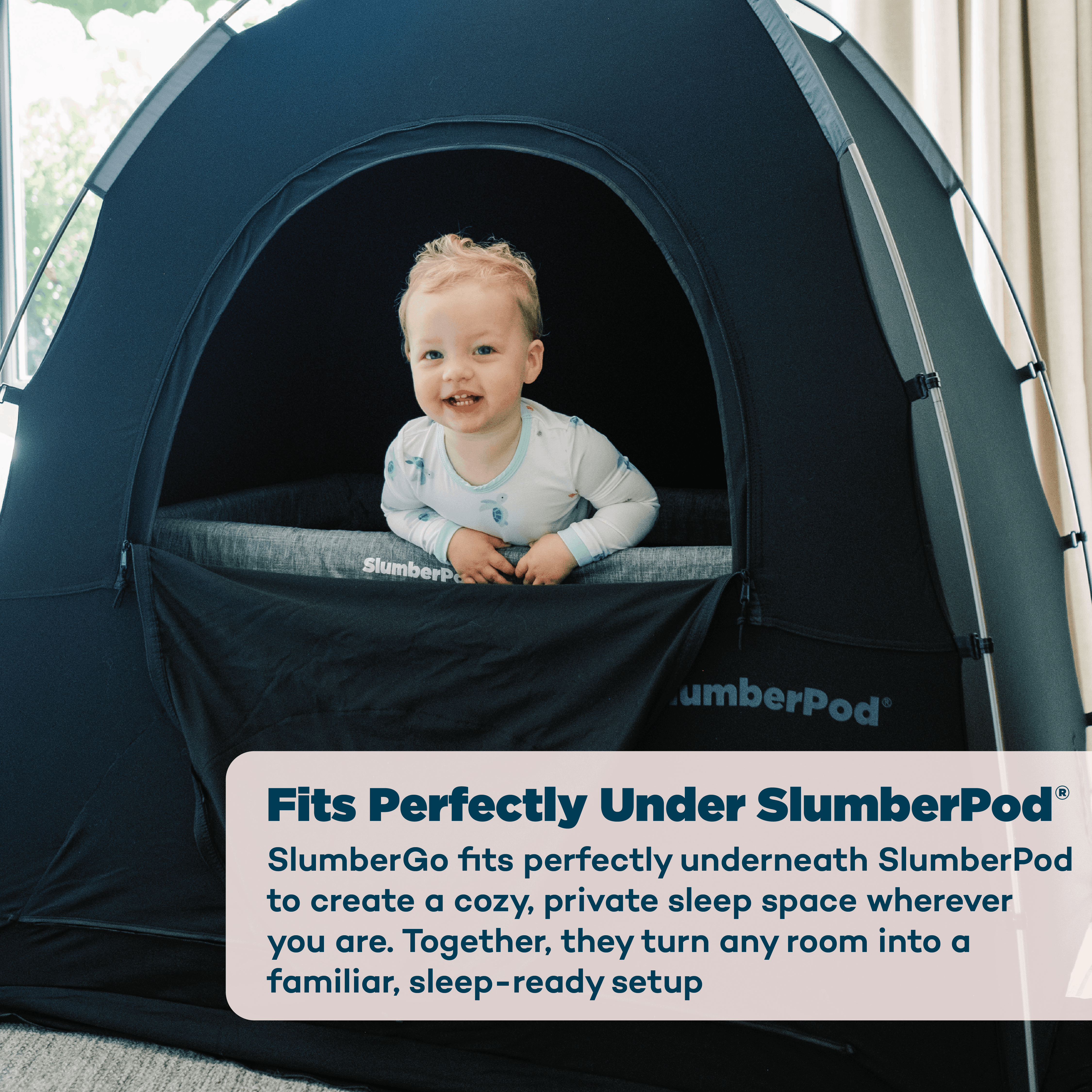 Meet SlumberGo, the lightweight playard made for families on the move. With a compact fold and super-fast setup, SlumberGo creates a safe, comfortable space for play and rest wherever your adventures take you.