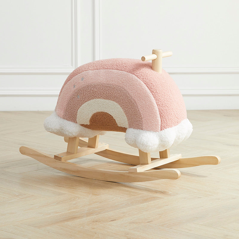 Reach for the clouds while rocking on our rainbow rocker.  The soft fleece seat sits atop puffy clouds and strong wooden rockers that are out of this world.  Ages 18 months up to 70 lbs.