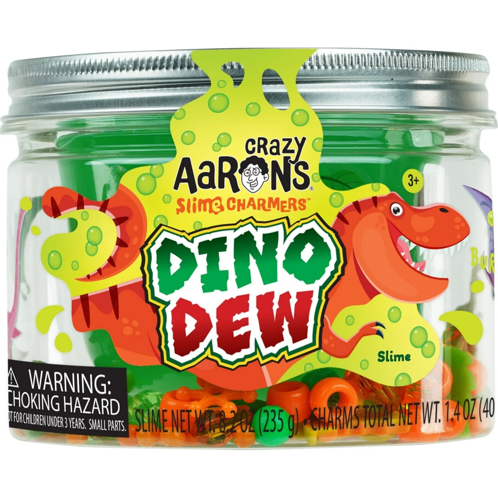 Experience Jurassic sized fun with Crazy Aaron's Slime Charmers™ Dino Dew. This bright green slime and dinosaur themed charms and beads will have your create a world a million years in the making. Banana scented to heighten your senses. Mix, stretch and create with these dinosaur themed charms. So create your own world when dinosaurs ruled with Slime Charmers™ Dino Dew!