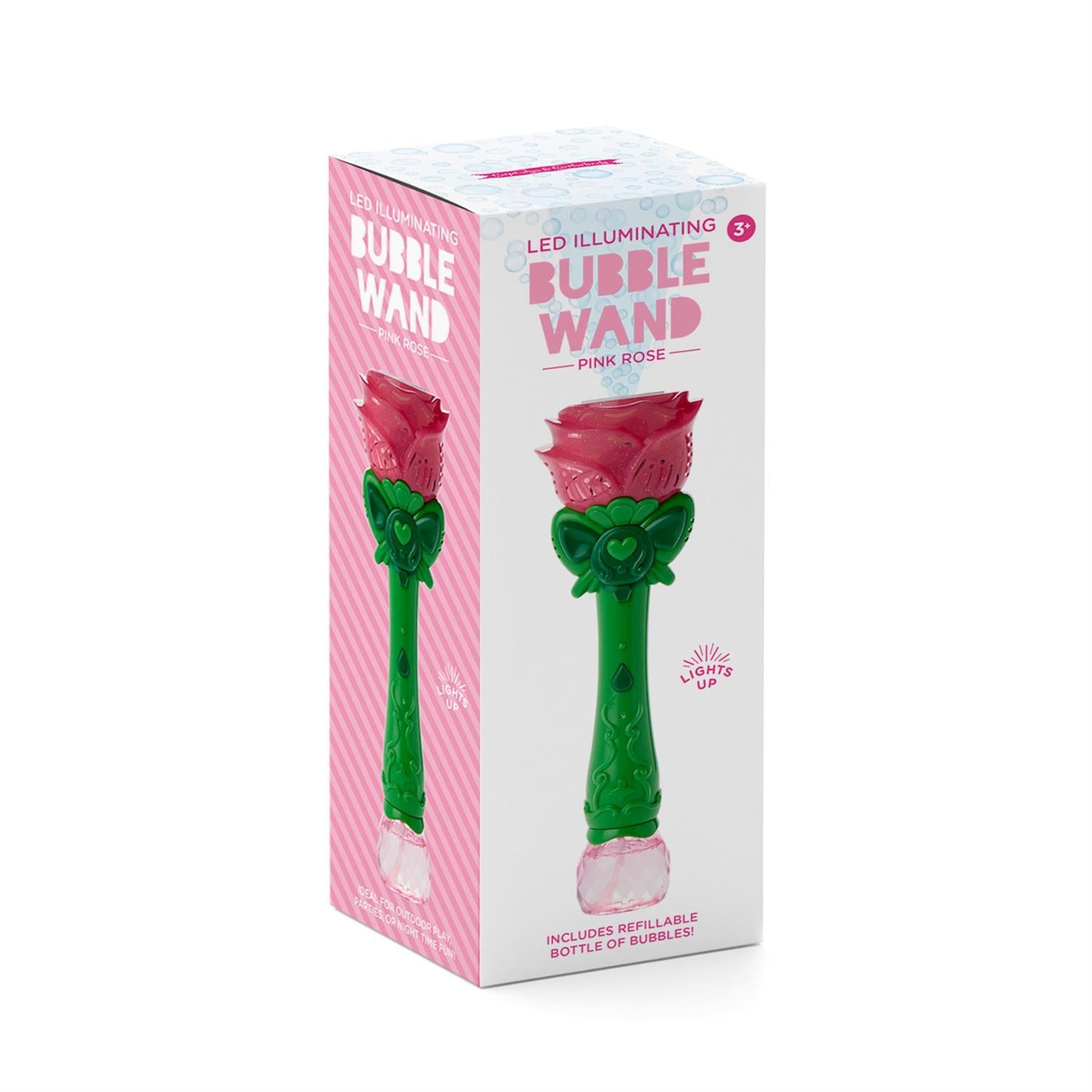 Cupcakes and Cartwheels Pink Rose LED Illuminating Bubble Wand adds a touch of magic to classic bubble play. Designed in the shape of a blooming rose, this elegant wand lights up as bubbles drift through the air, creating a whimsical and enchanting experience.