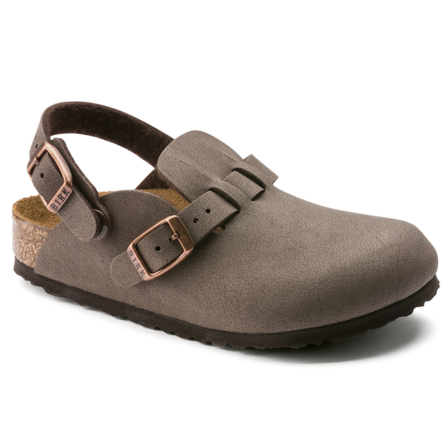 The BIRKENSTOCK Kay is a classic clog featuring a convertible backstrap with a buckle closure that can swivel back for a more secure fit. The upper is made from the skin-friendly, hard-wearing synthetic material Birkibuc®.