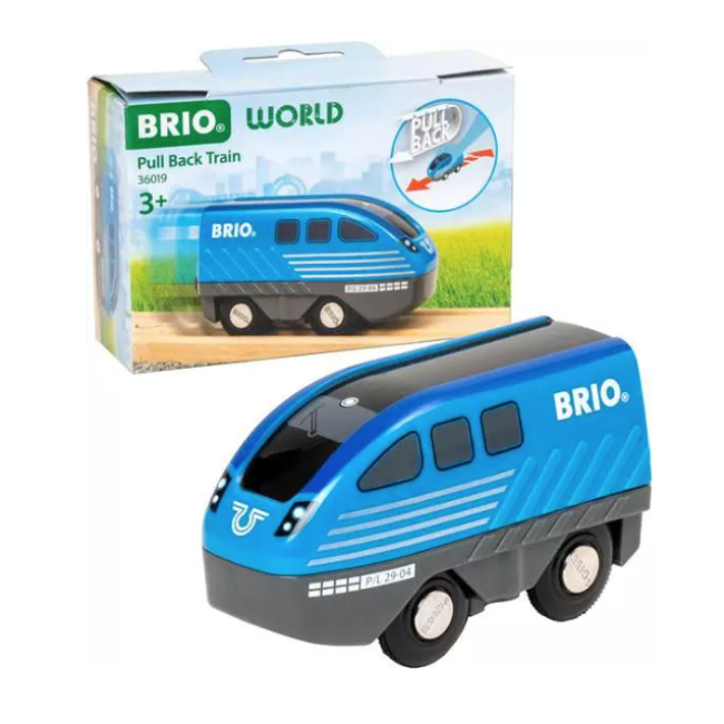 Never run out of power with the 36019 Pull Back Train. Running on 100% toddler power, this toy train needs no batteries to bring smiles to little faces. Pull back the blue train and watch it seamlessly navigate the tracks. When you see the telltale signs that it’s running low on power, load it up and it’s back to business - no tears in sight. With an easy-to-use function and classic BRIO magnet, this train is a great addition to any BRIO World that brings endless joy to little engineers.